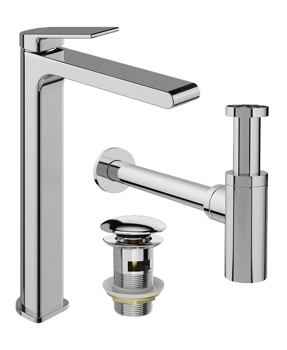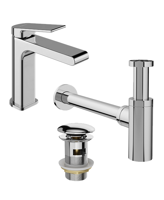 Смеситель - 1 шт. Комплект подводки - 1 шт. Набор креплений - 1 шт. Сифон - 1 шт. Донный клапан - 1 шт.