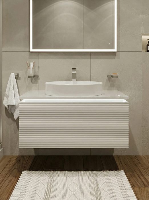 Консоль под раковину - 1 шт. Раковина - 1 шт. Столешница - 1 шт. Полотенцедержатель - 1 шт. Зеркало - 1 шт.