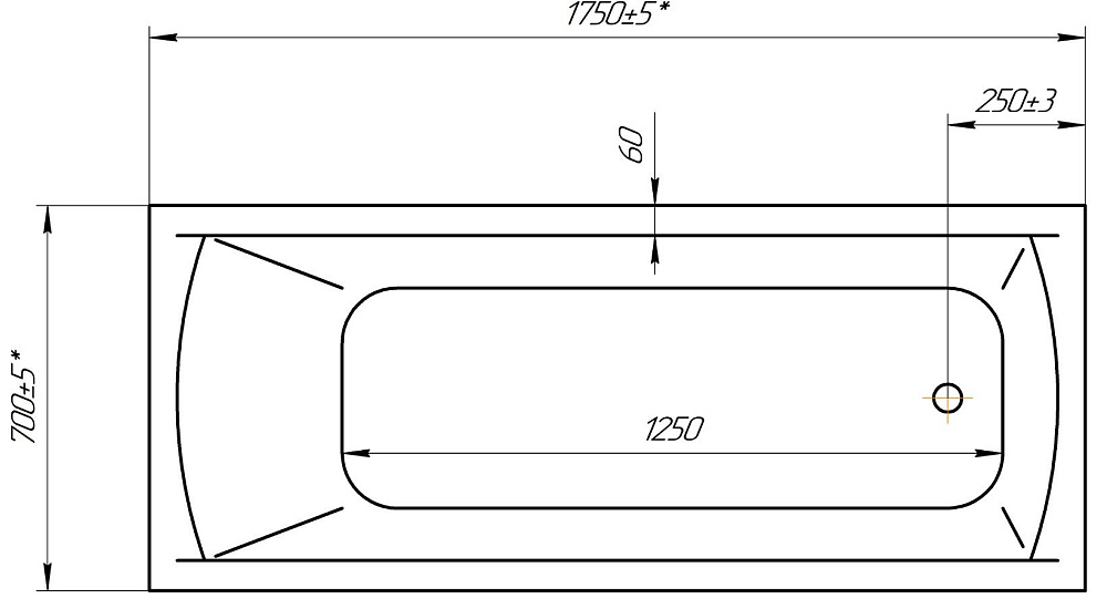 Акриловая ванна STWORKI Эстерсунд 175x70 см, пристенная, белая, с каркасом