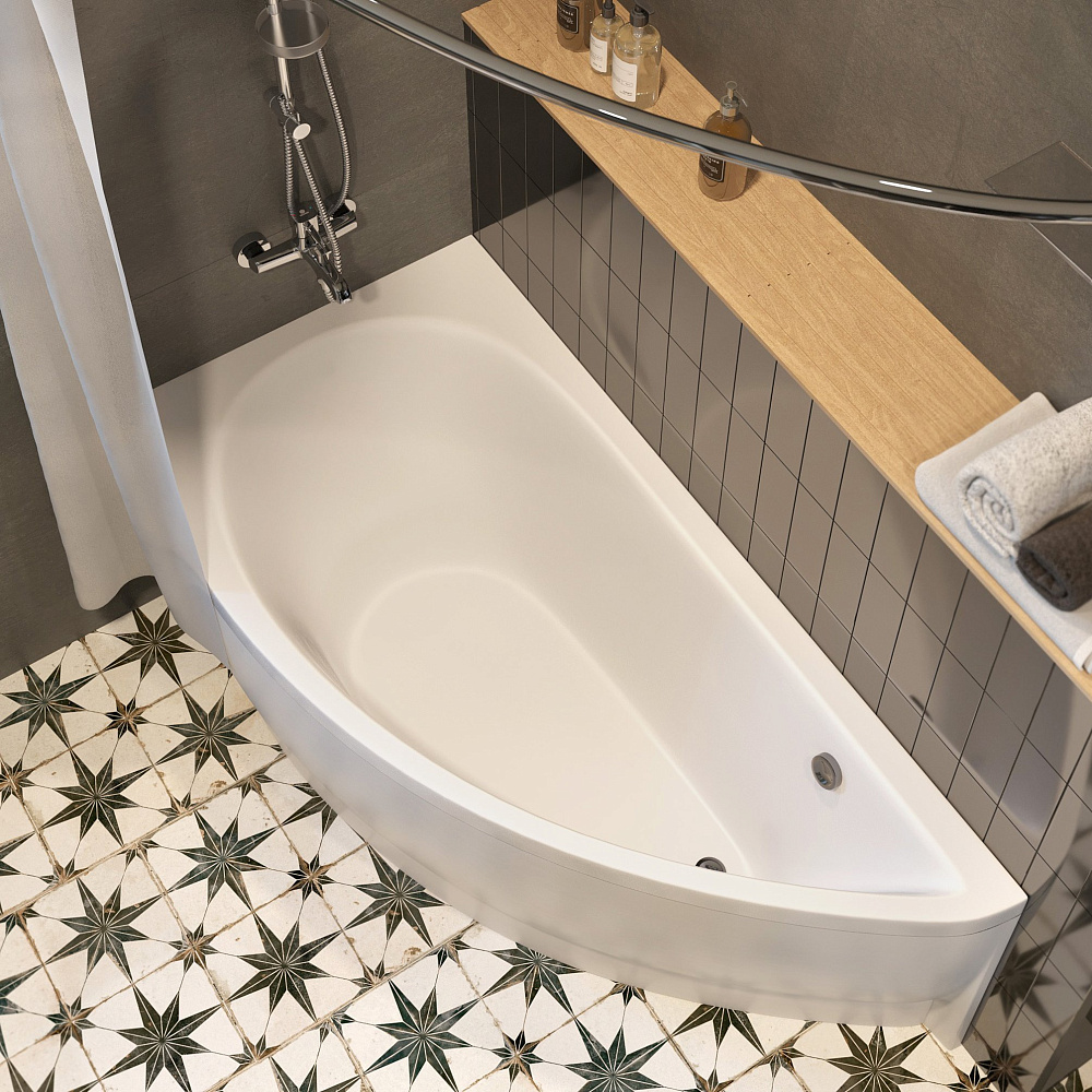 Акриловая ванна STWORKI Лунд L 150x75 см, угловая, левая, пристенная, белая, асимметричная, с каркасом