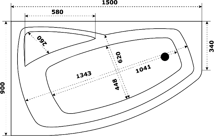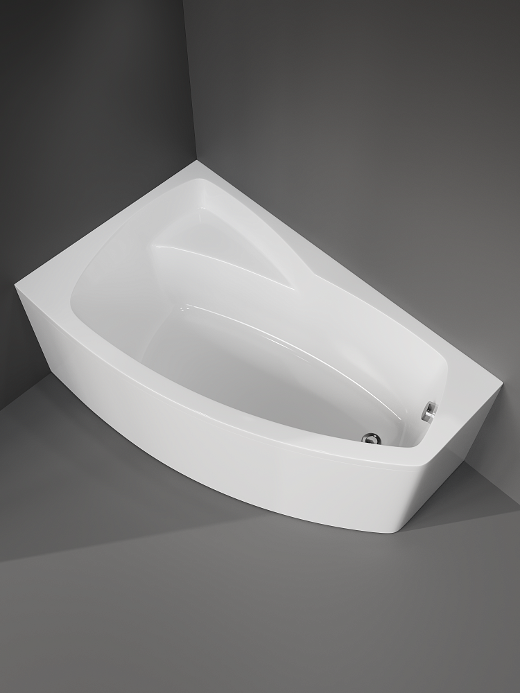Акриловая ванна STWORKI Монтре 150x90 см, угловая, левая, пристенная, белая, асимметричная, с каркасом, с сиденьем