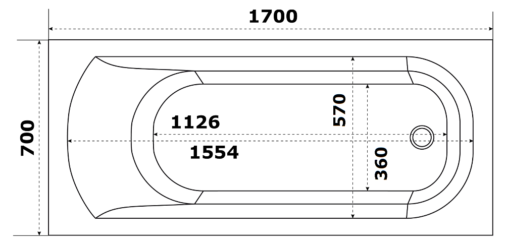 Акриловая ванна STWORKI Ольборг 170x70 см, пристенная, белая, с каркасом