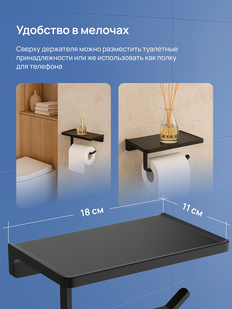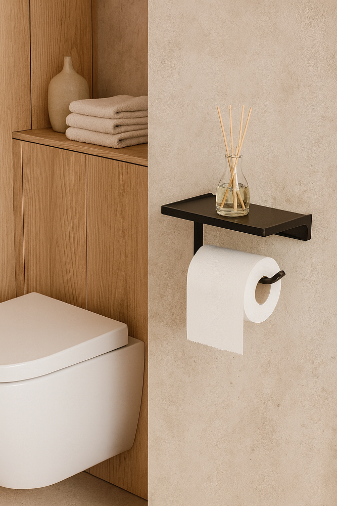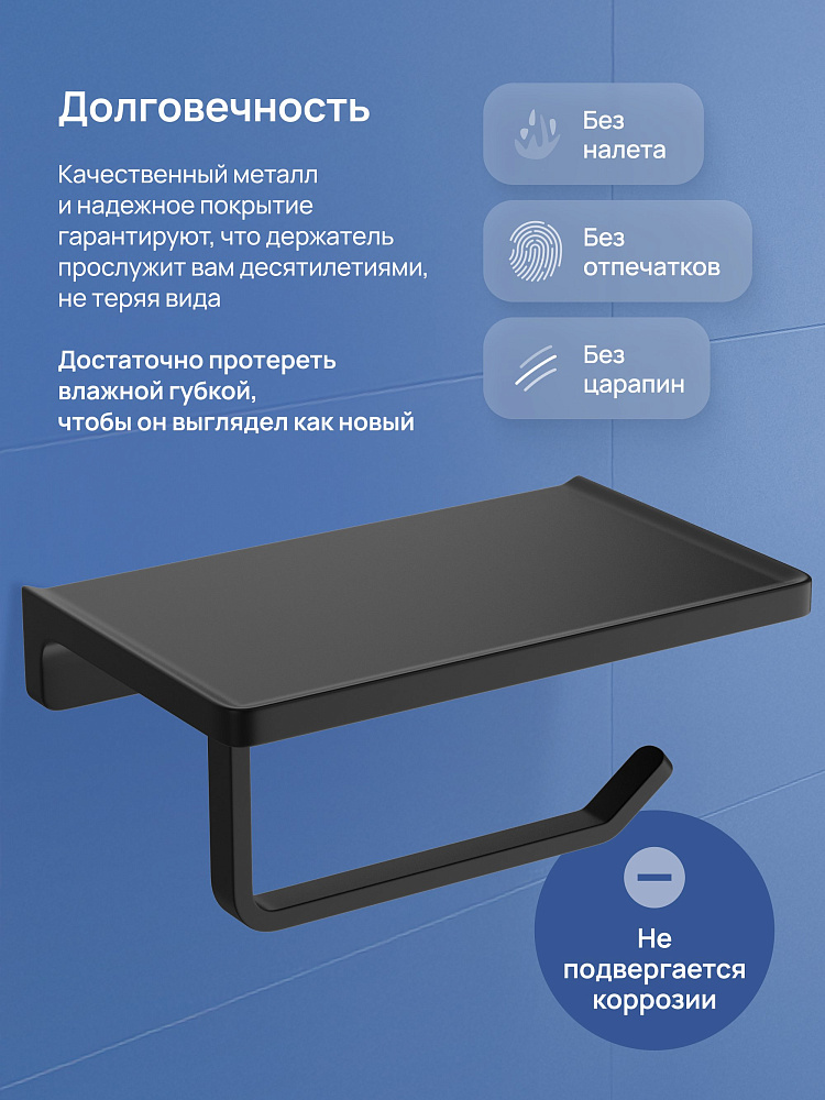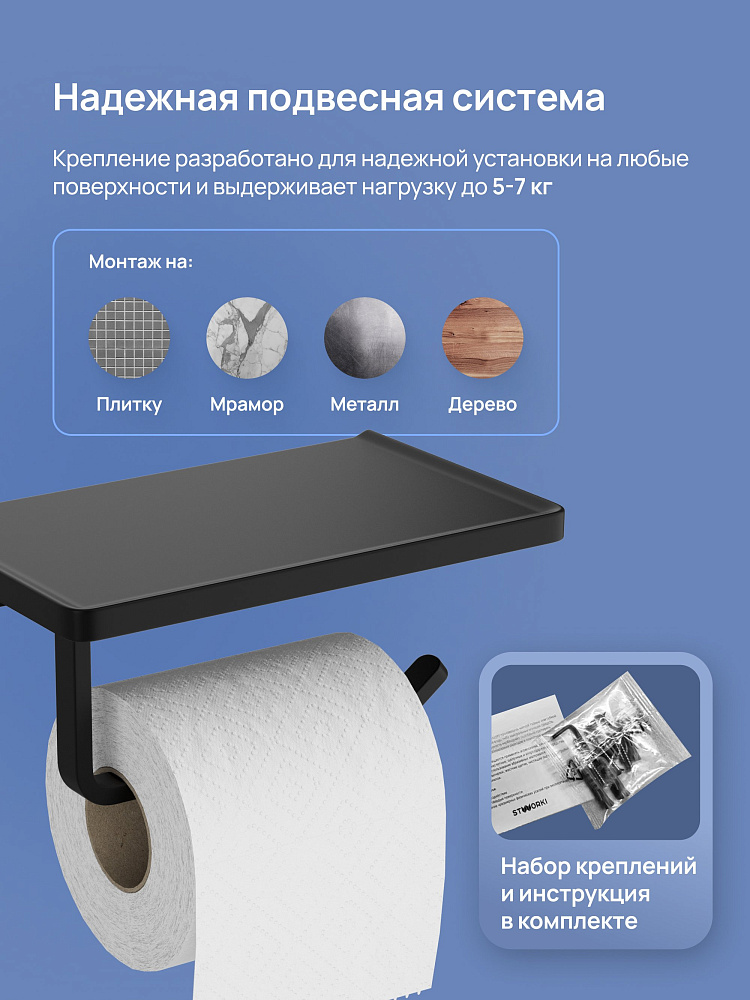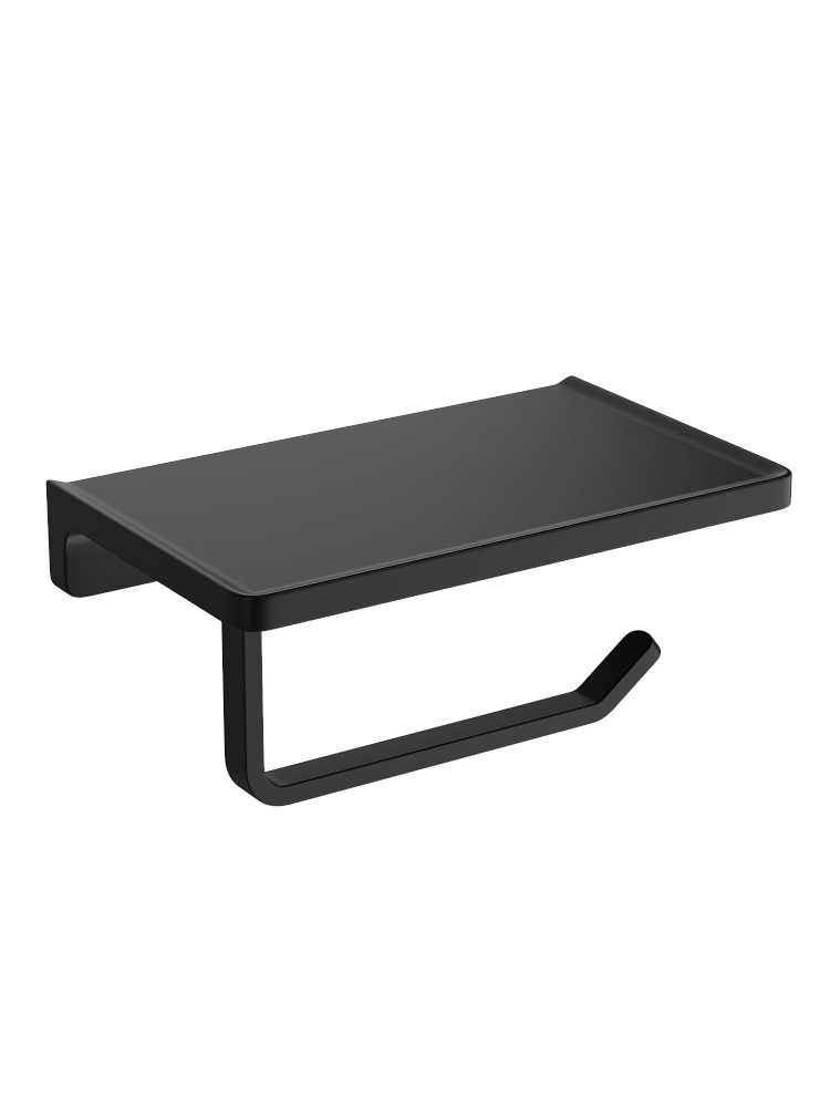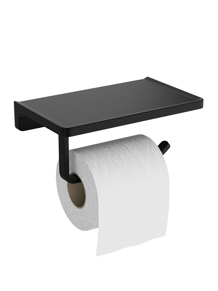 Держатель для туалетной бумаги STWORKI Эстерсунд S31345BK с полкой для телефона, матовый черный