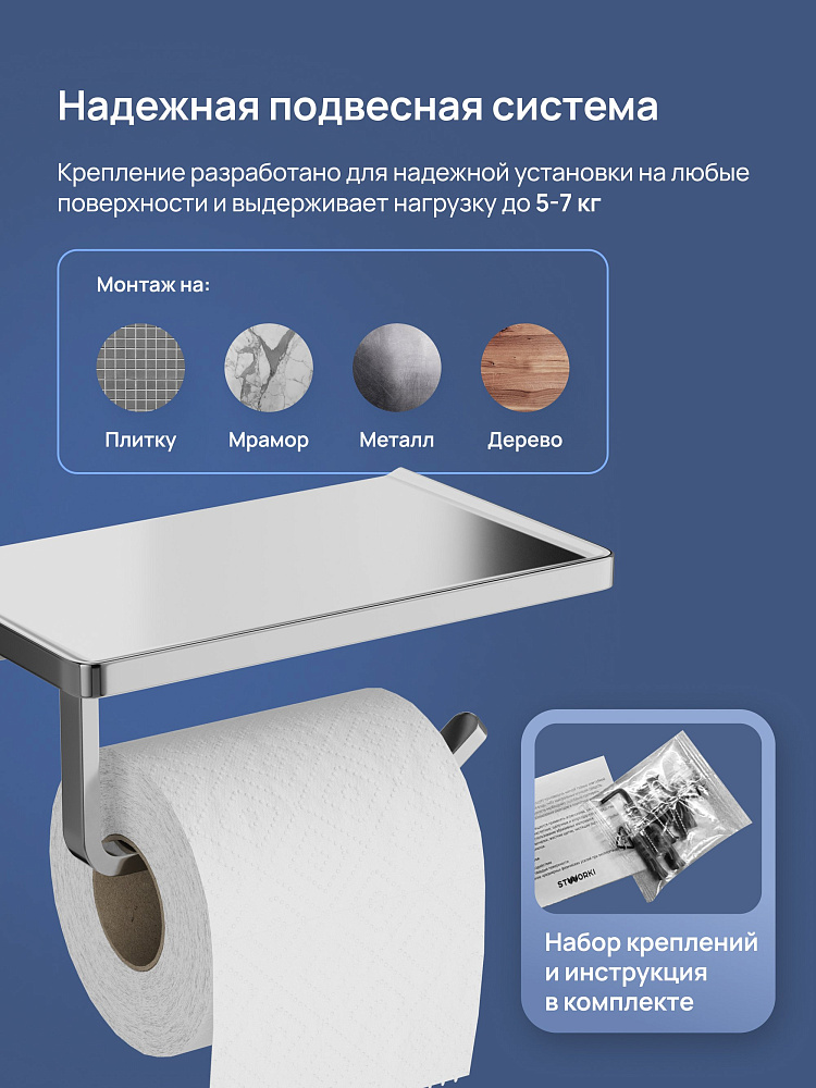 Держатель для туалетной бумаги STWORKI Эстерсунд S31345CR с полкой для телефона, хром
