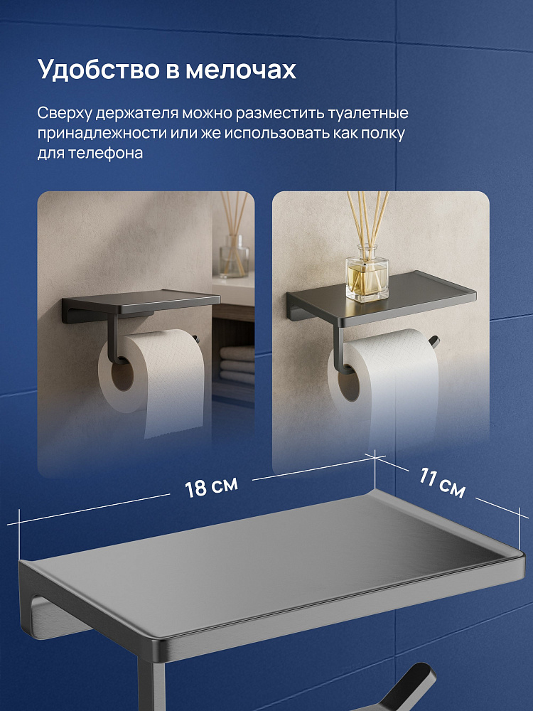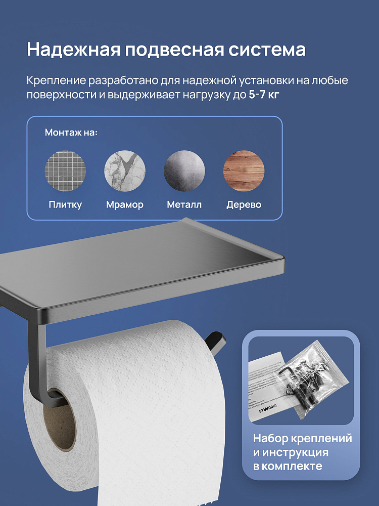 Держатель для туалетной бумаги STWORKI Эстерсунд S31345GB с полкой для телефона, вороненая сталь