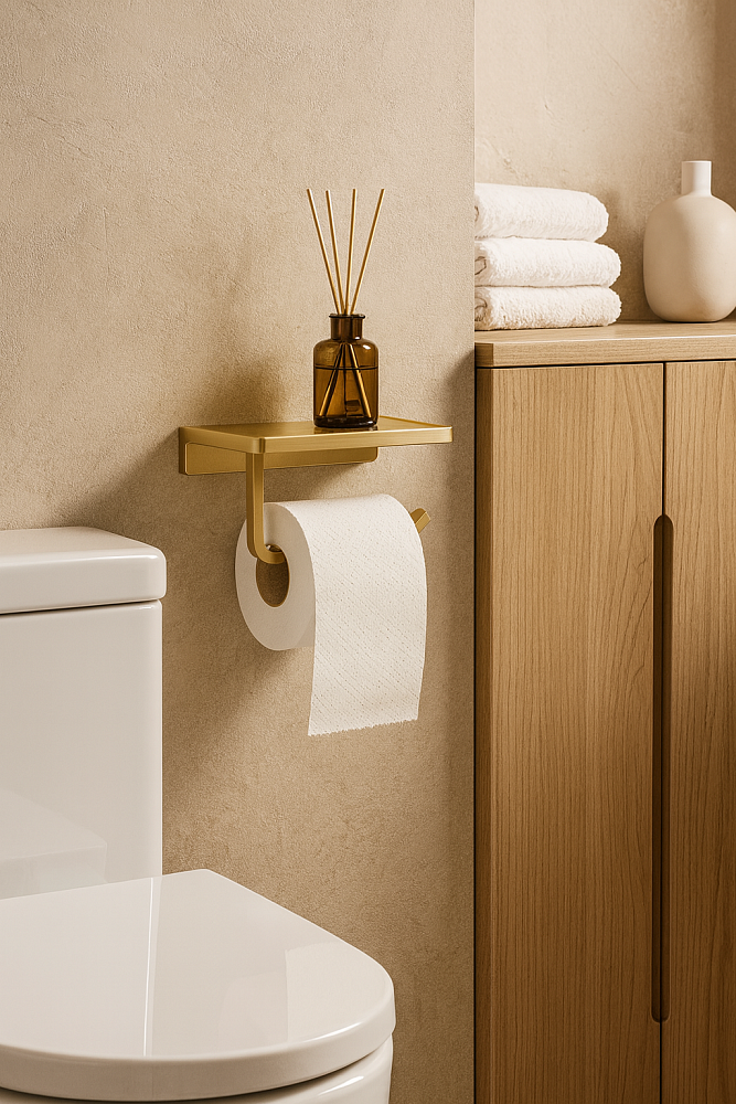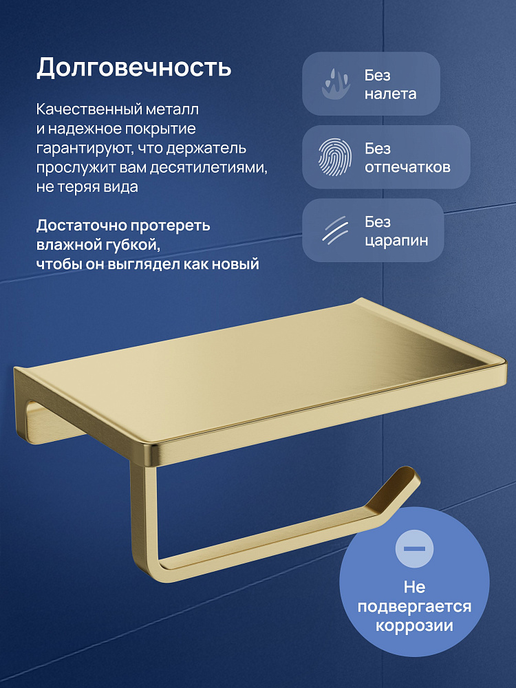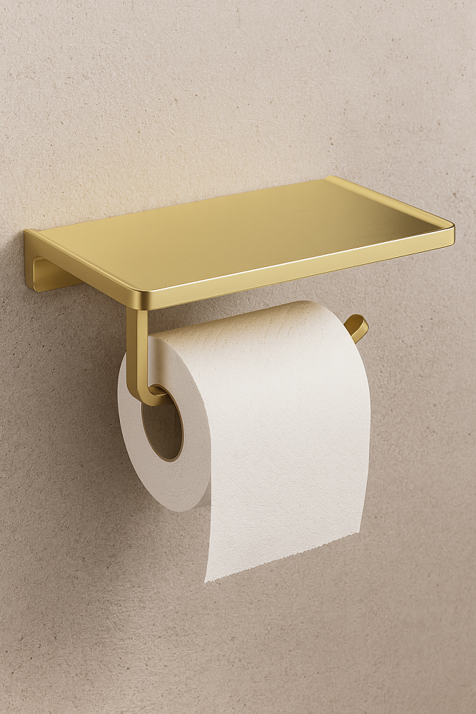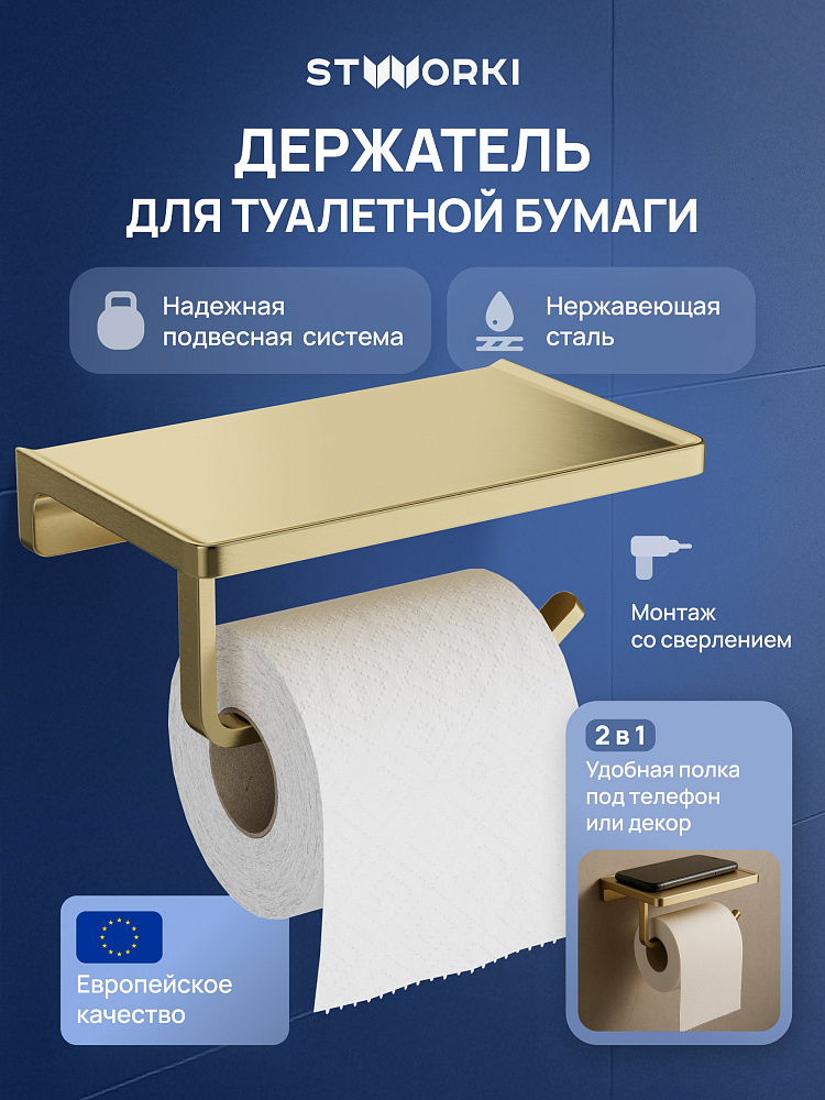 Держатель для туалетной бумаги STWORKI Эстерсунд S31345GM с полкой для телефона, матовое золото