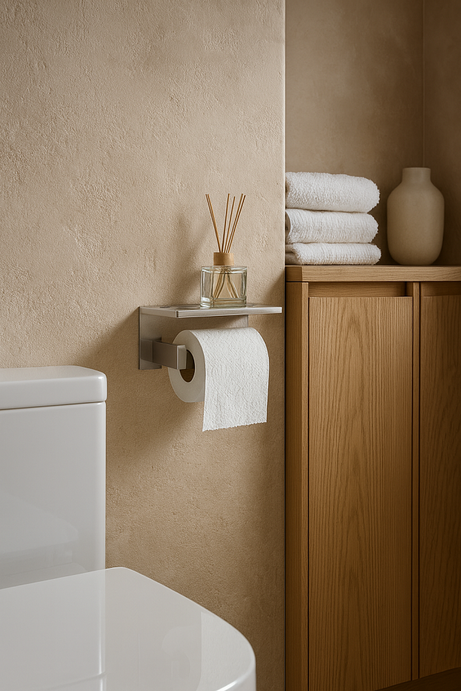 Держатель для туалетной бумаги STWORKI Готланд S13345CR с полкой для телефона, хром