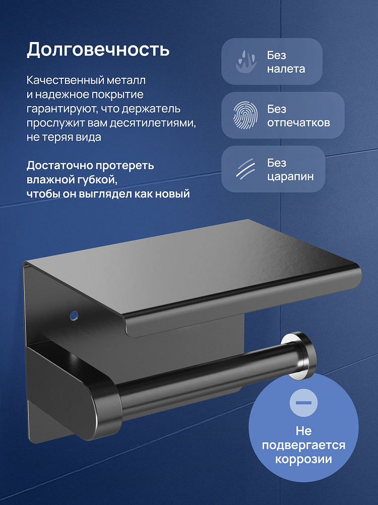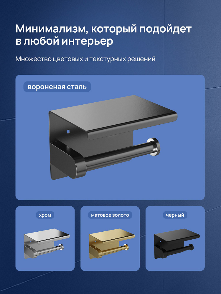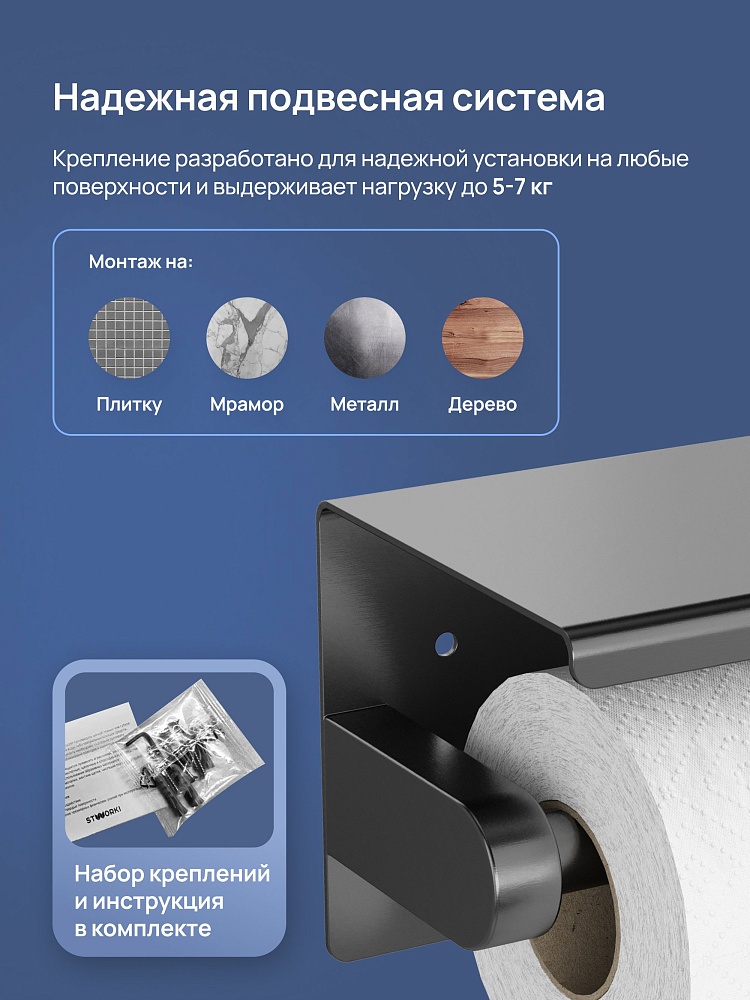 Держатель для туалетной бумаги STWORKI Хельсинки S33345GB с полкой для телефона, вороненая сталь