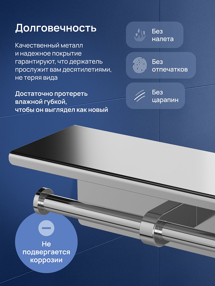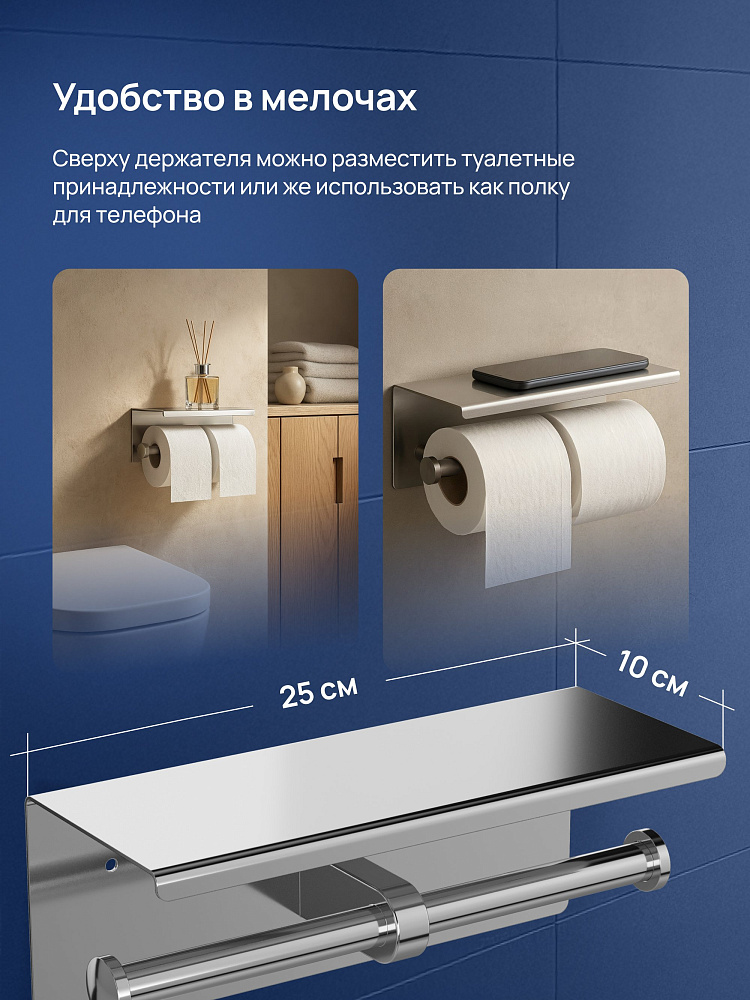Держатель для туалетной бумаги STWORKI Хельсинки S33350CR с полкой для телефона, двойной, хром