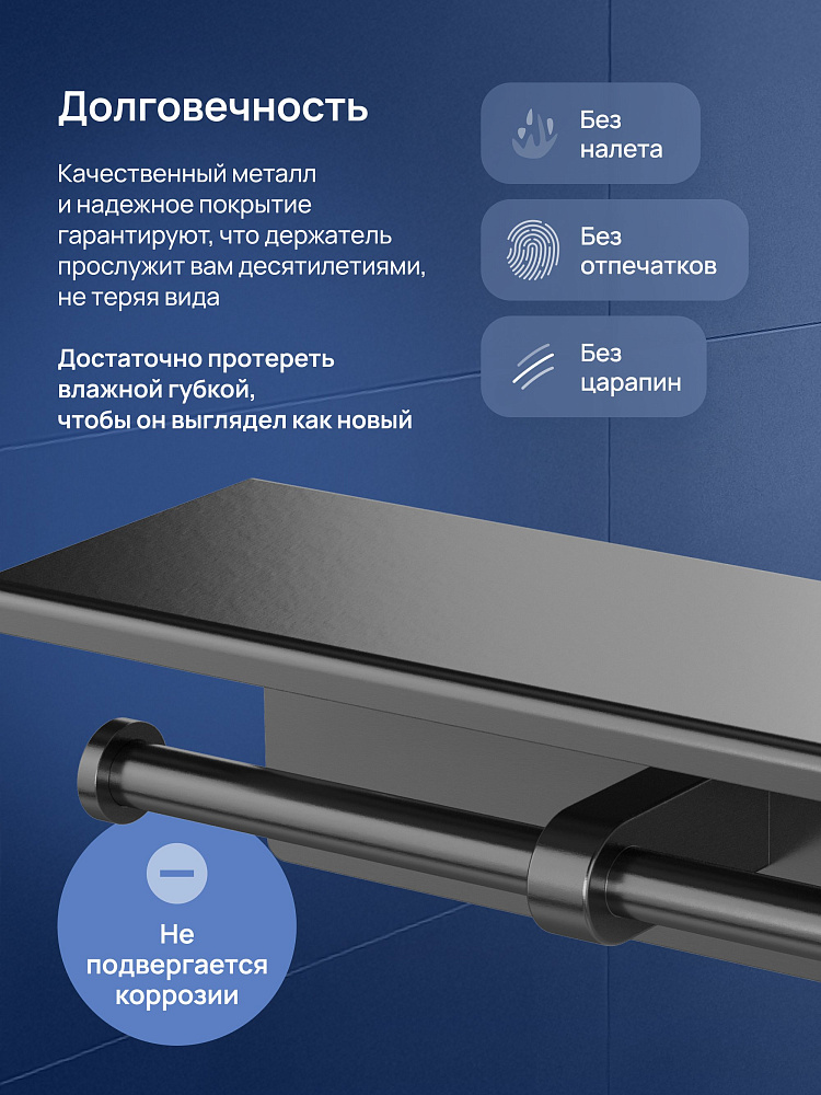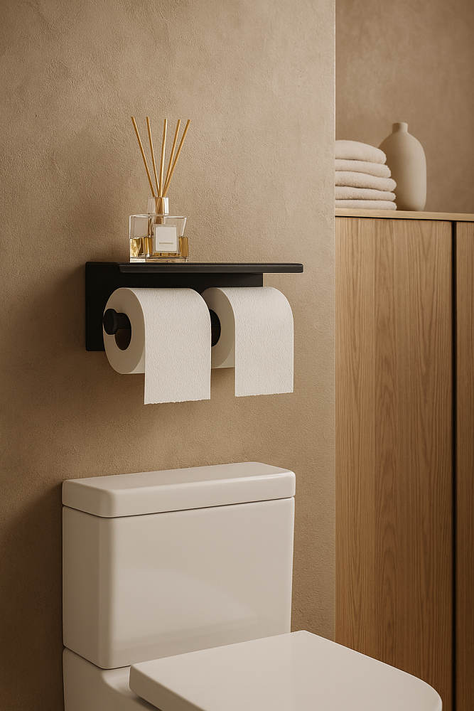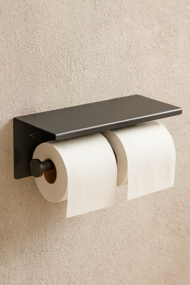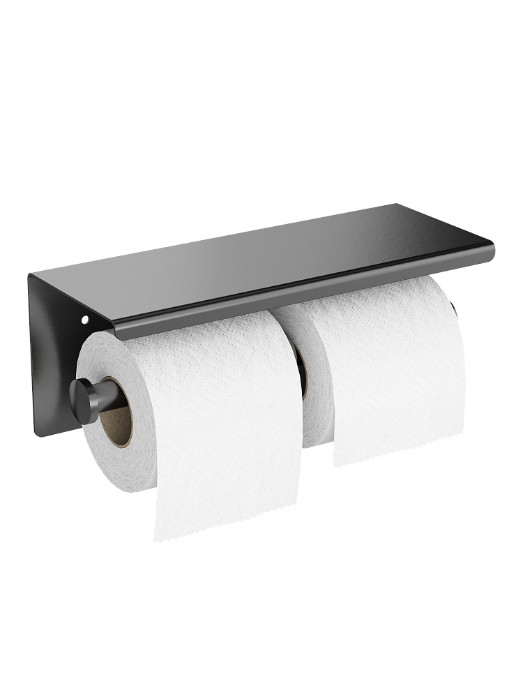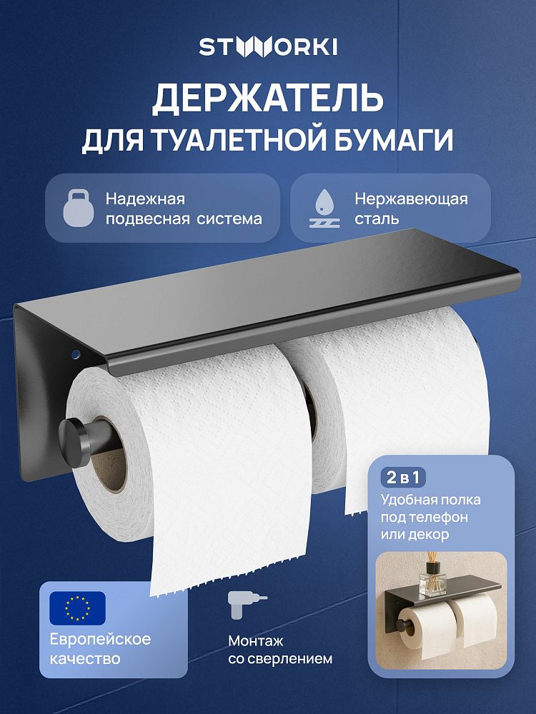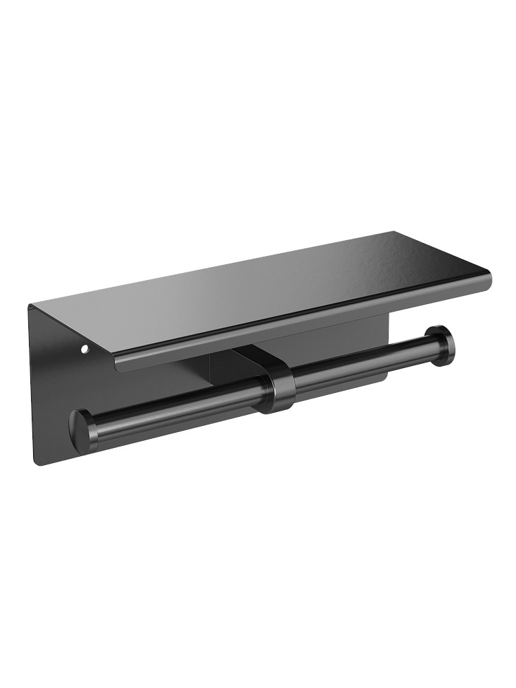 Держатель для туалетной бумаги STWORKI Хельсинки S33350GB с полкой для телефона, двойной, вороненая сталь
