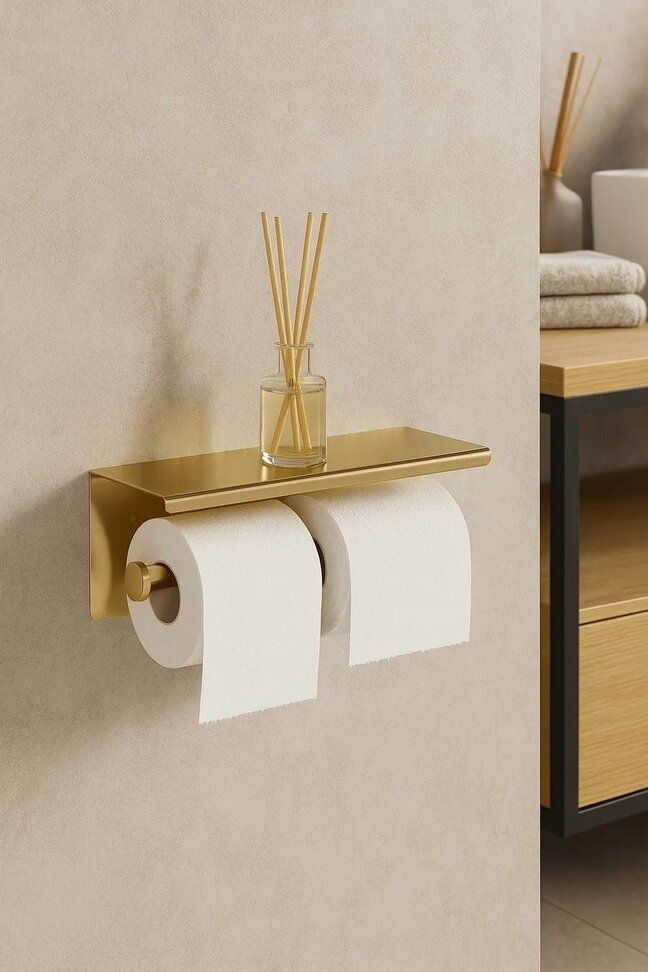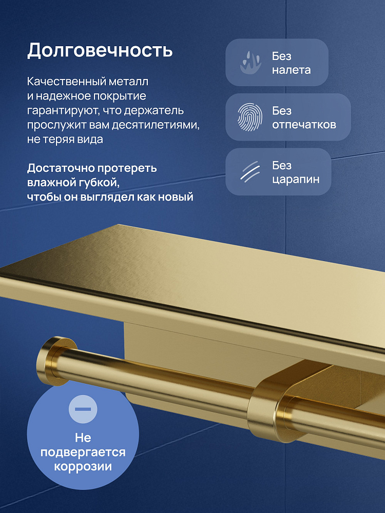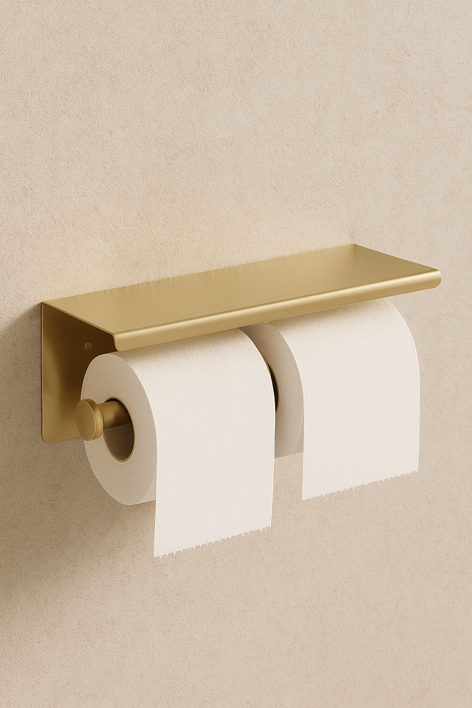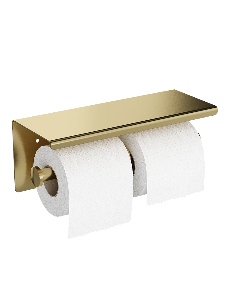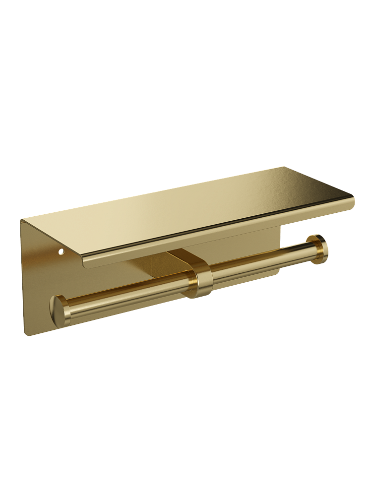 Держатель для туалетной бумаги STWORKI Хельсинки S33350GM с полкой для телефона, двойной, матовое золото