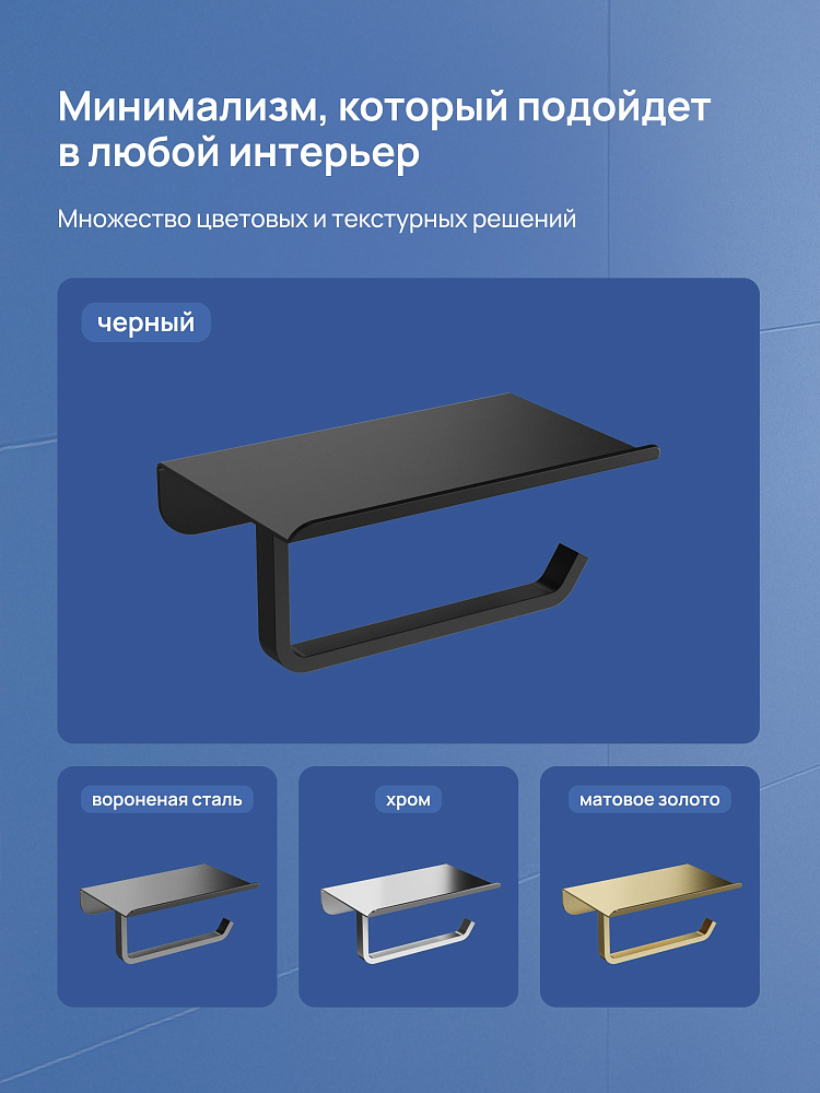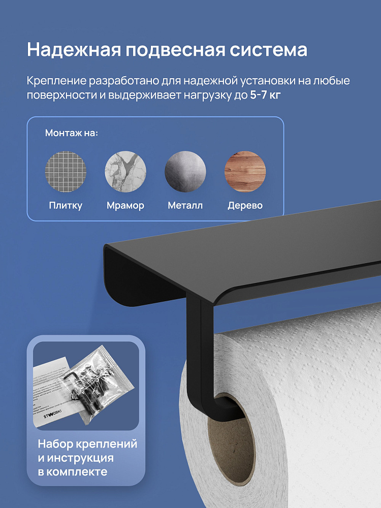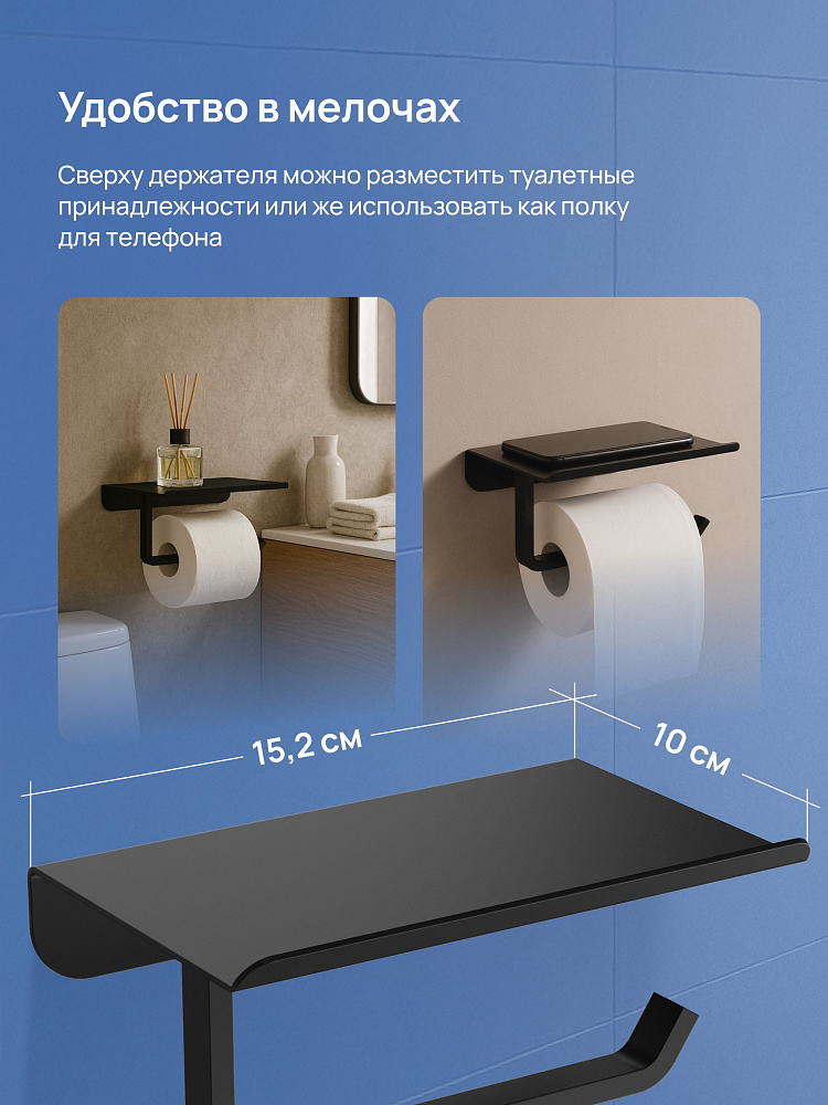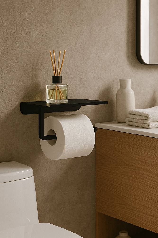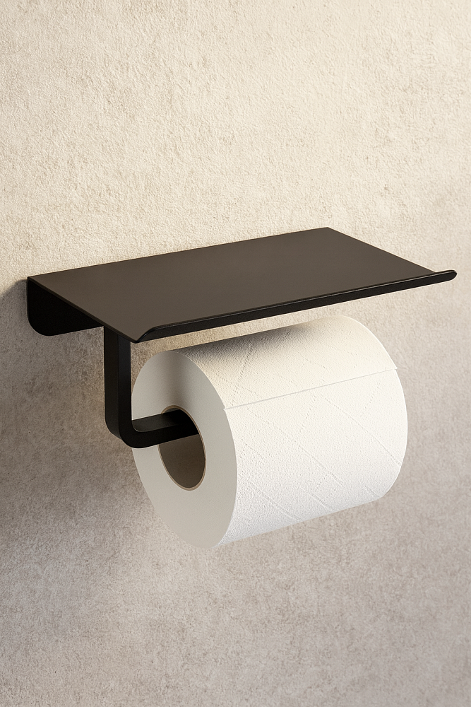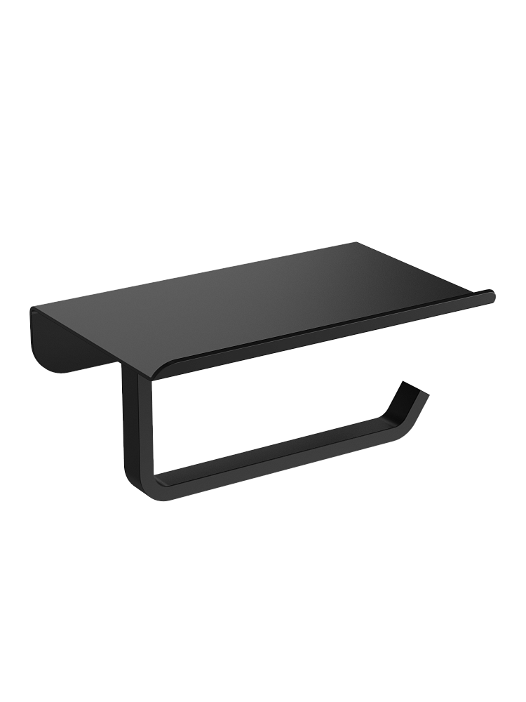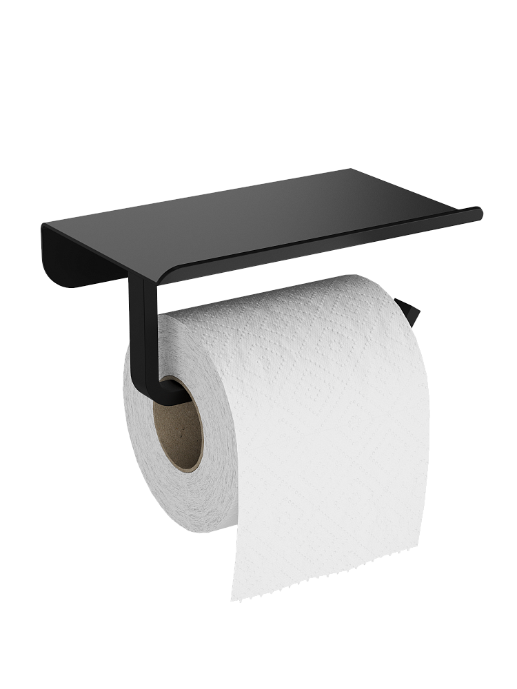 Держатель для туалетной бумаги STWORKI Киркенес S45345BK с полкой для телефона, матовый черный