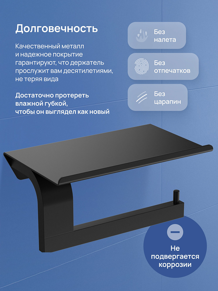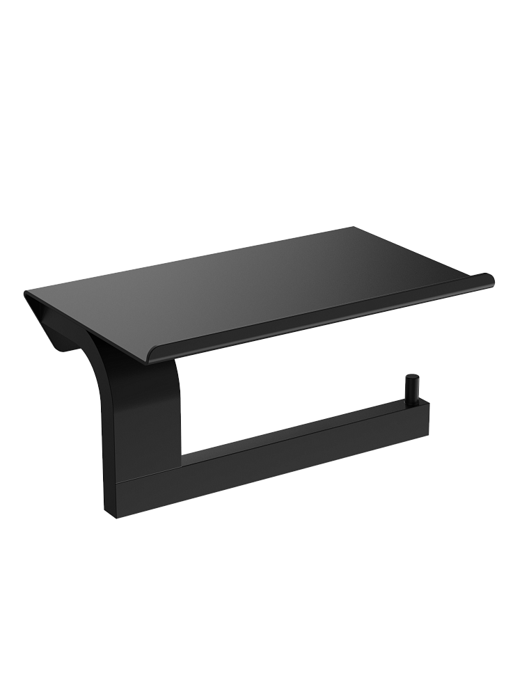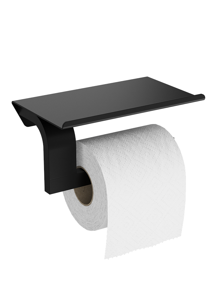 Держатель для туалетной бумаги STWORKI Вестфолл S08345BK с полкой для телефона, матовый черный
