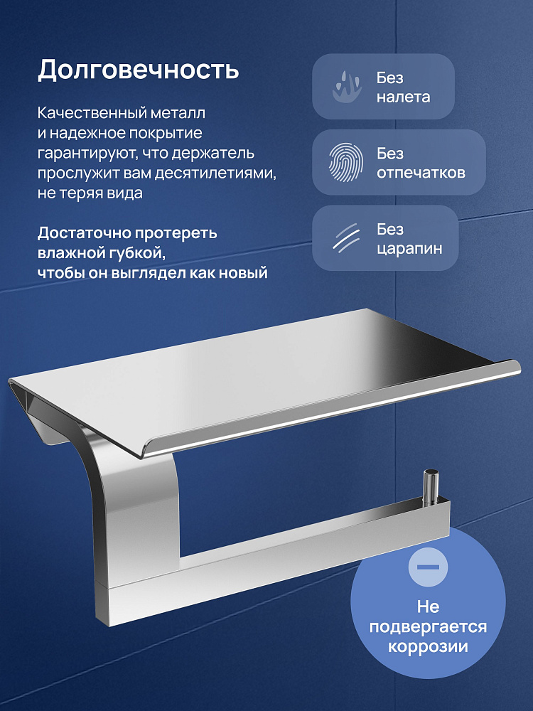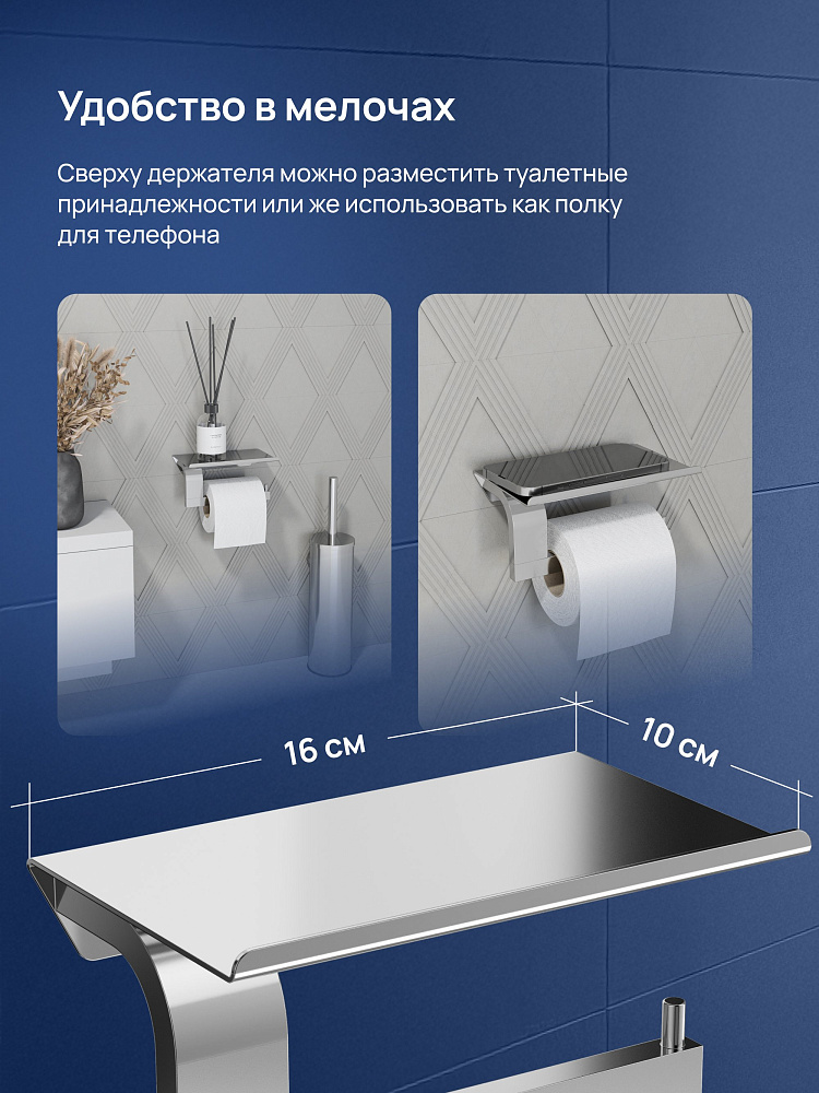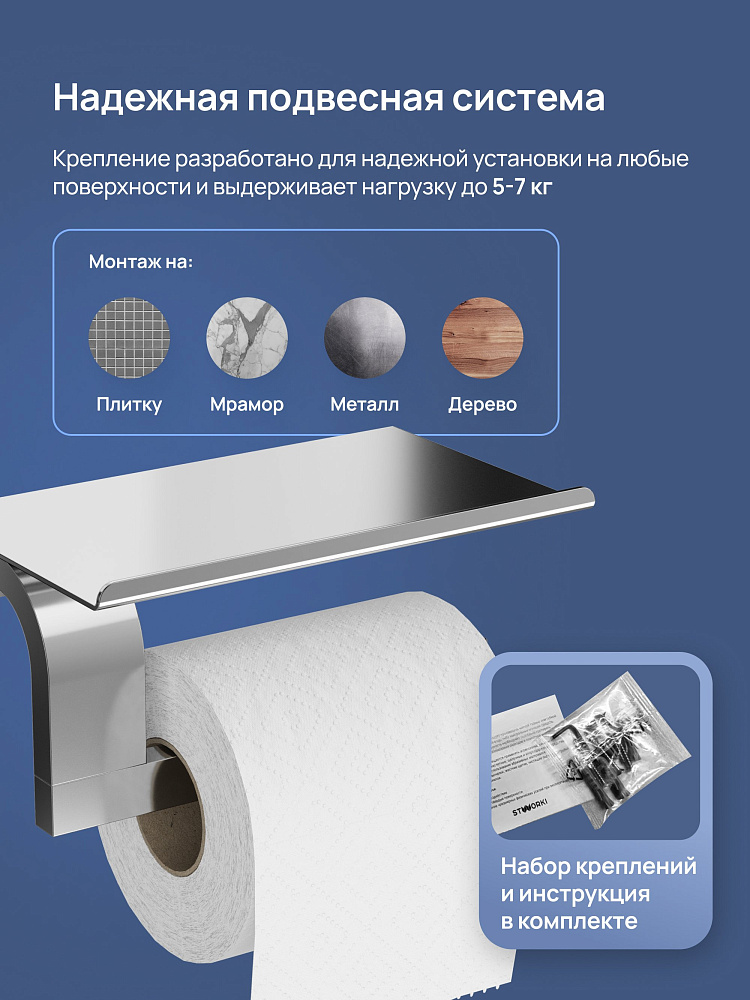 Держатель для туалетной бумаги STWORKI Вестфолл S08345CR с полкой для телефона, хром