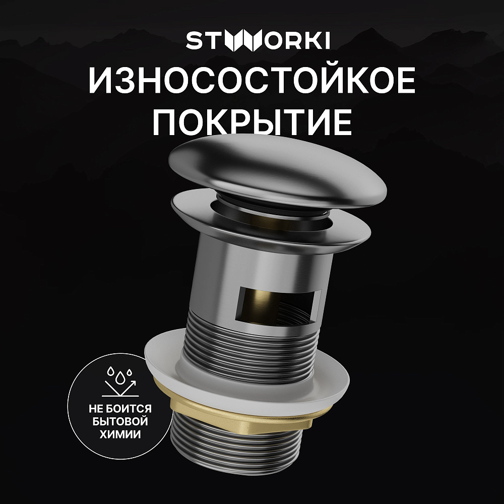 Донный клапан для раковины STWORKI SW-001GB с переливом, вороненая сталь