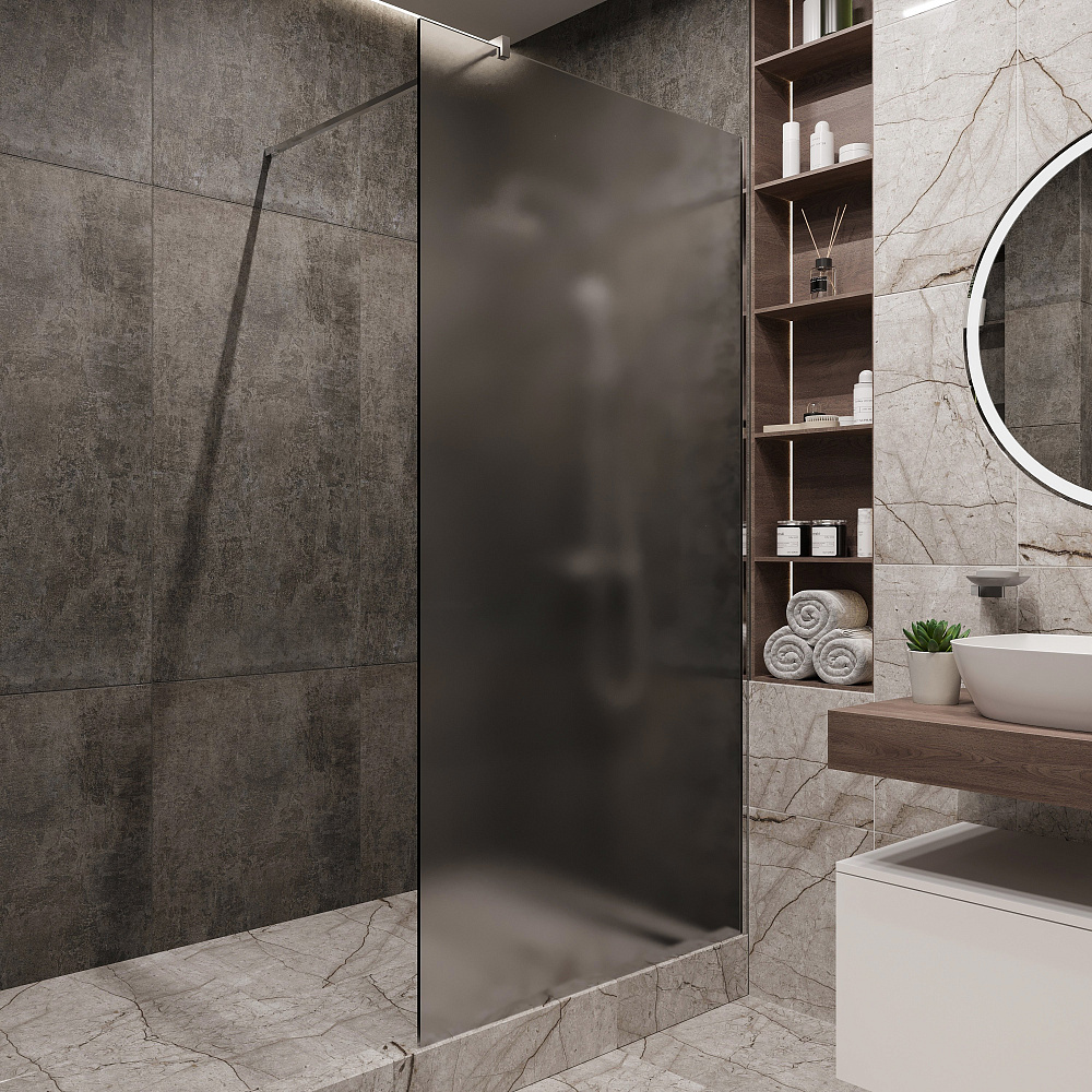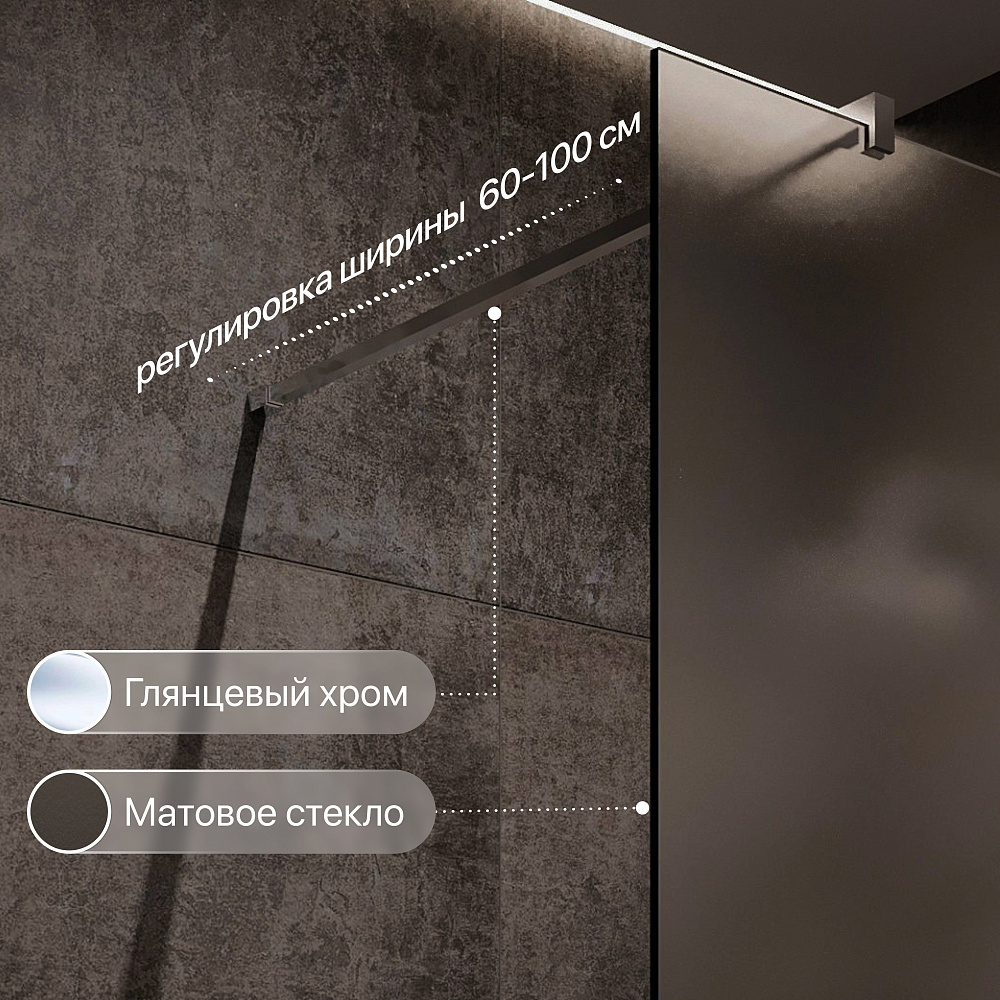 Душевая перегородка STWORKI Берген 100 см, профиль хром глянцевый, матовое стекло