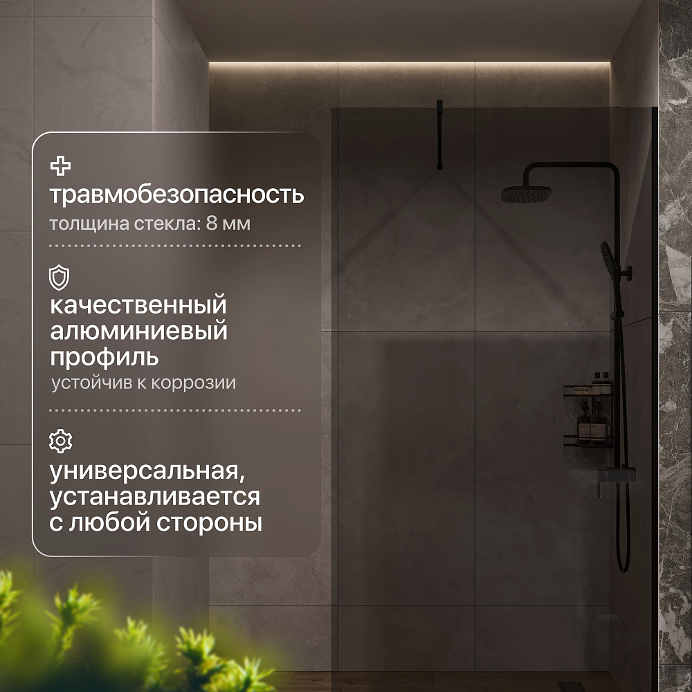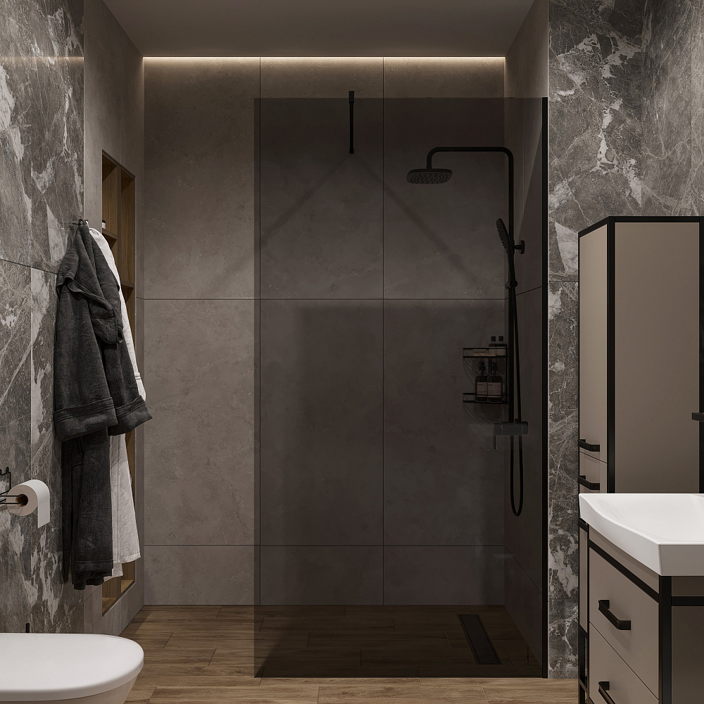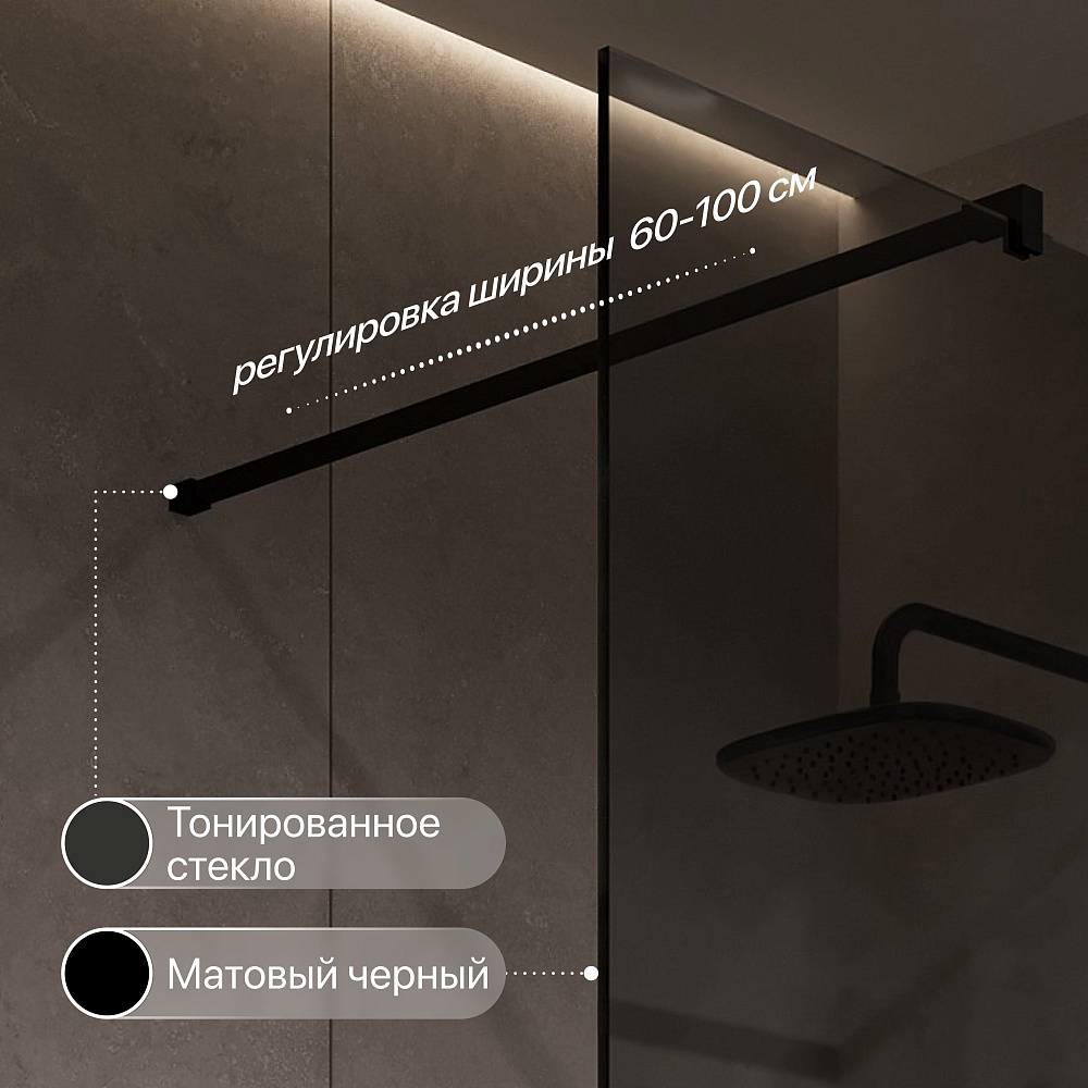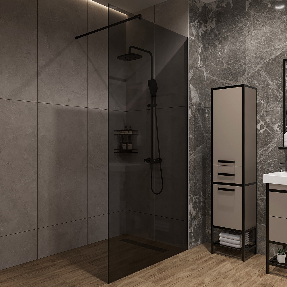 Душевая перегородка STWORKI Берген 110 см, профиль черный матовый, тонированое стекло