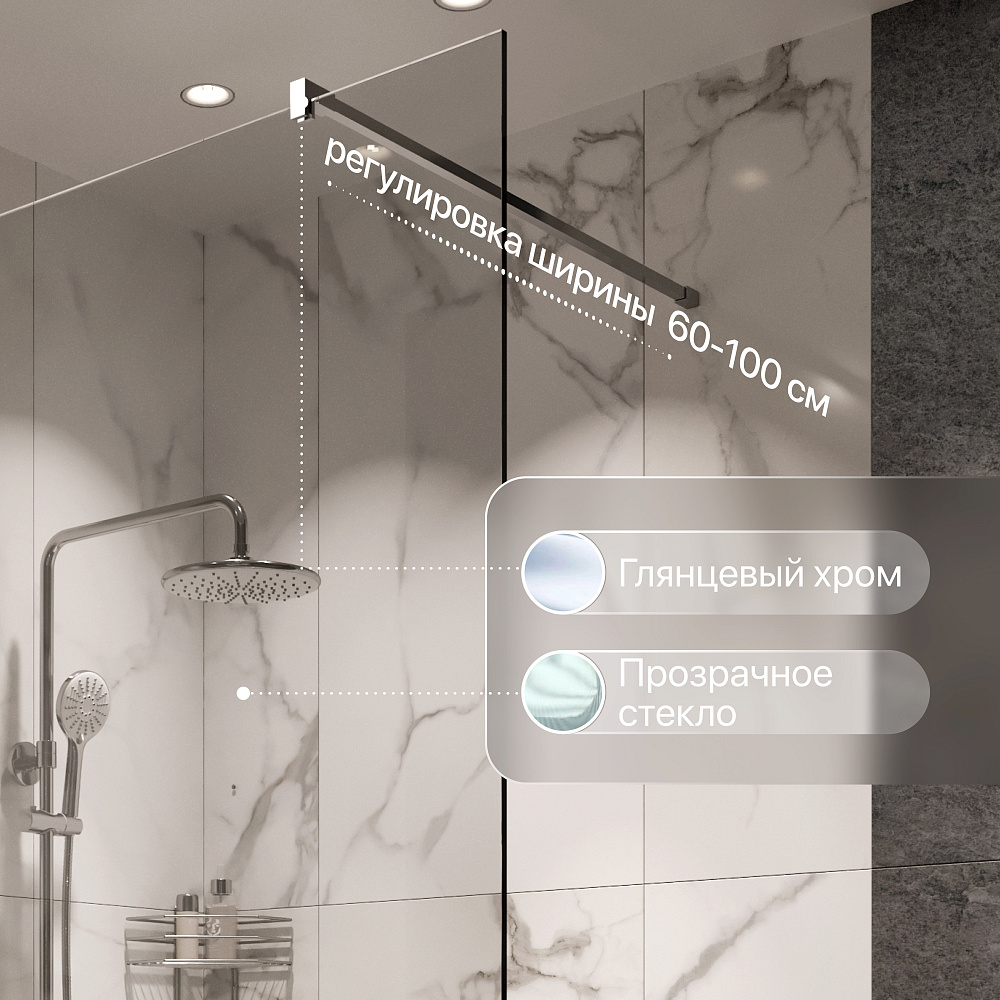 Душевая перегородка STWORKI Берген 120 см, профиль хром глянцевый, прозрачное стекло