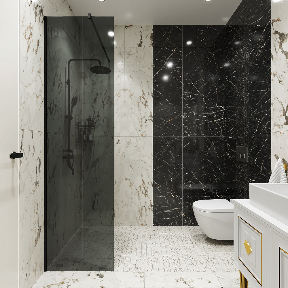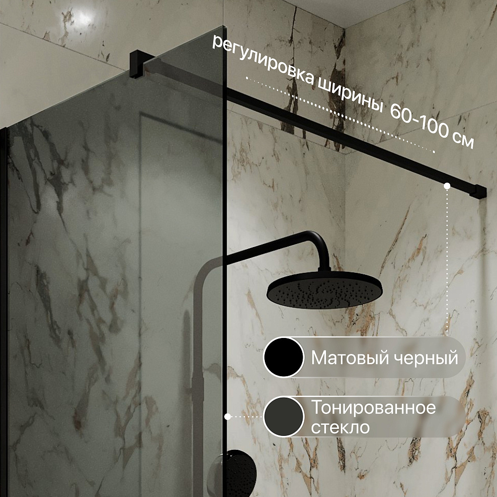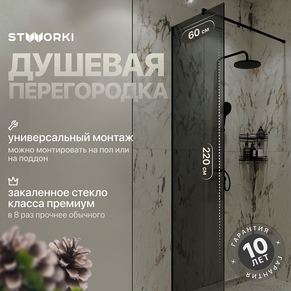 Душевая перегородка STWORKI Берген 60 см, профиль черный матовый, тонированое стекло