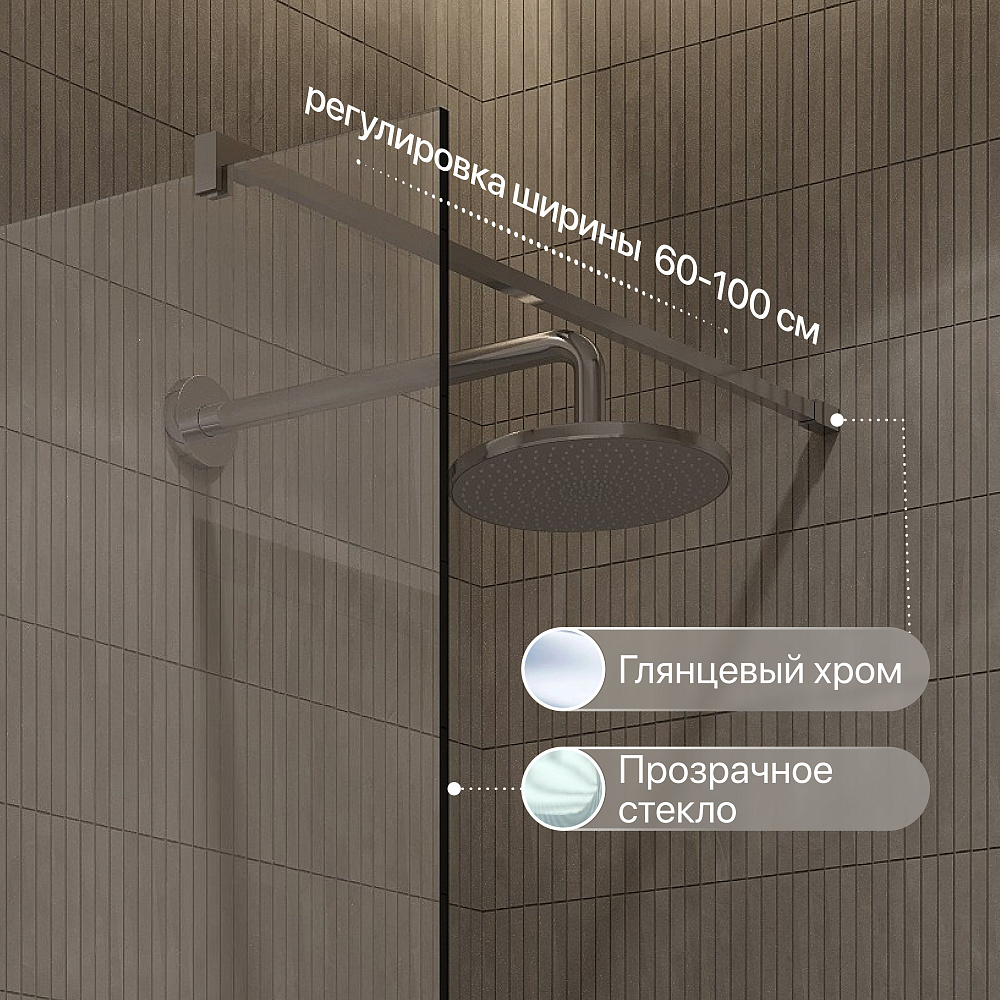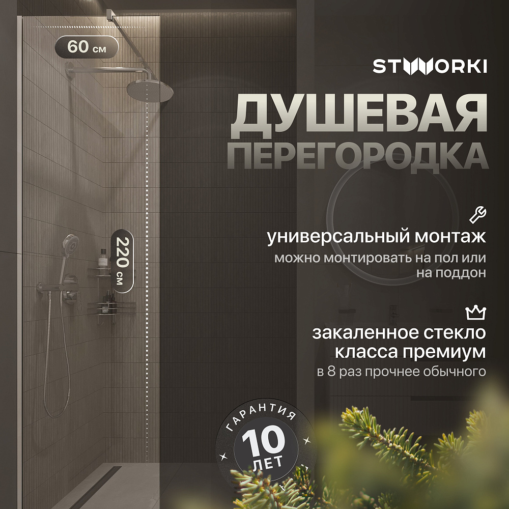 Душевая перегородка STWORKI Берген 60 см, профиль хром глянцевый, прозрачное стекло