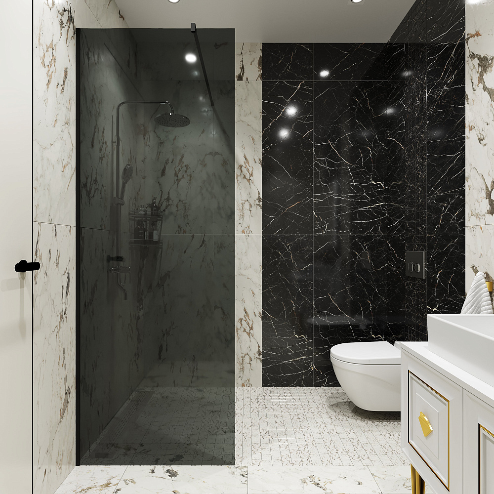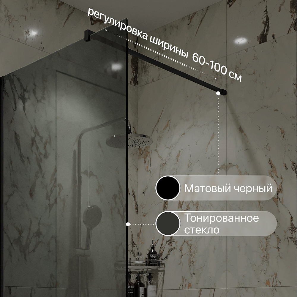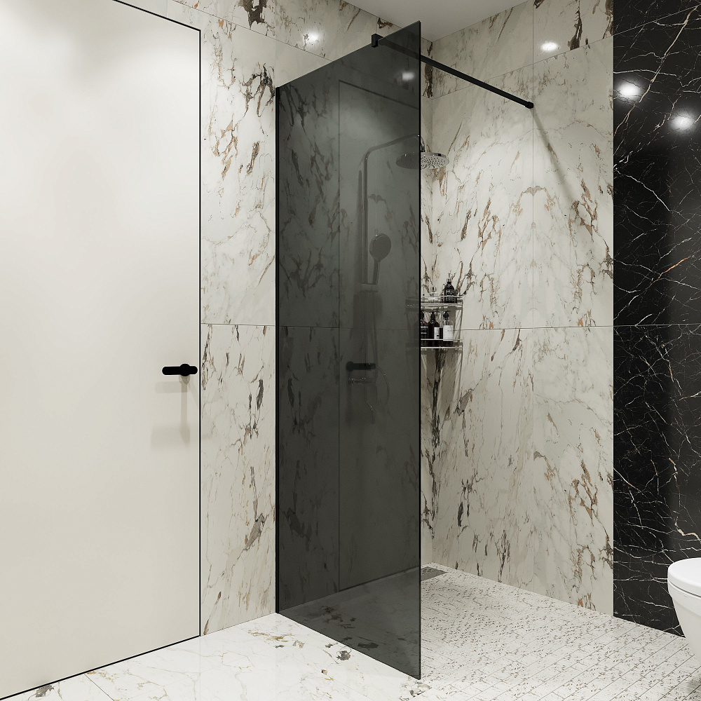 Душевая перегородка STWORKI Берген 80 см, профиль черный матовый, тонированое стекло
