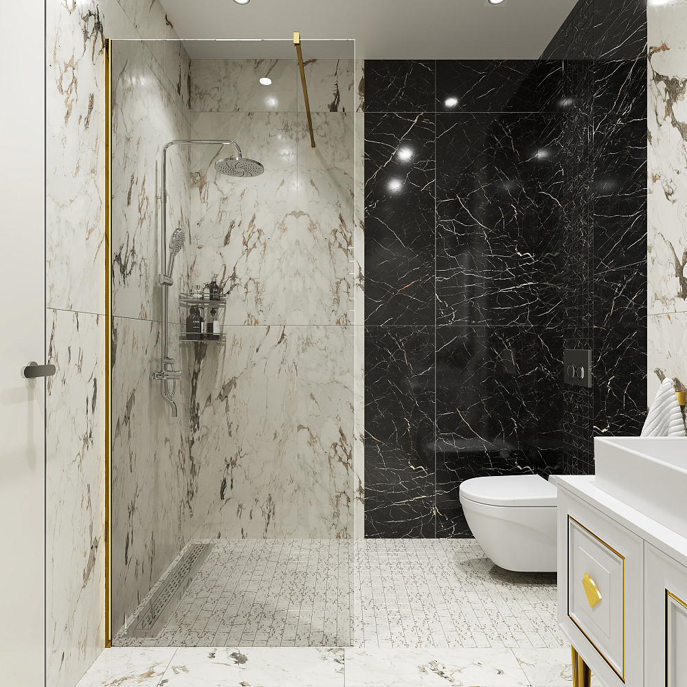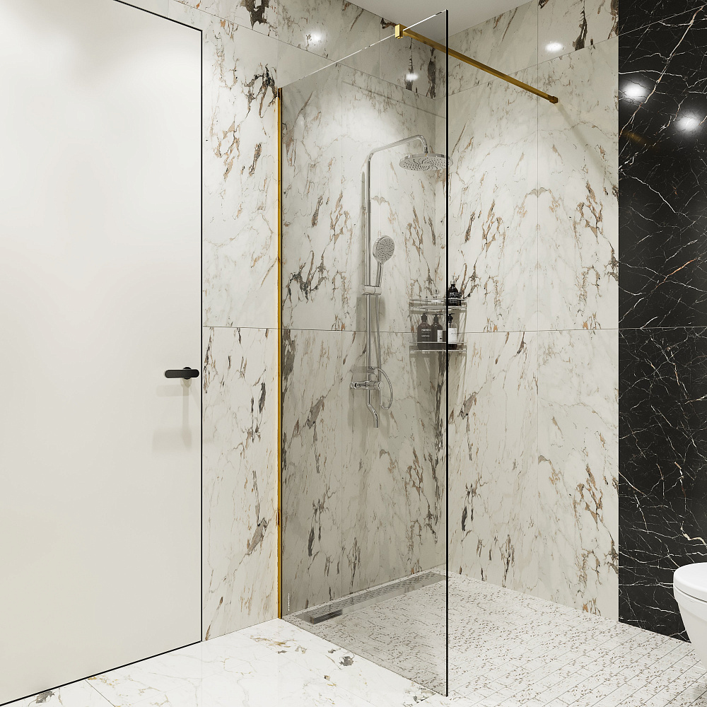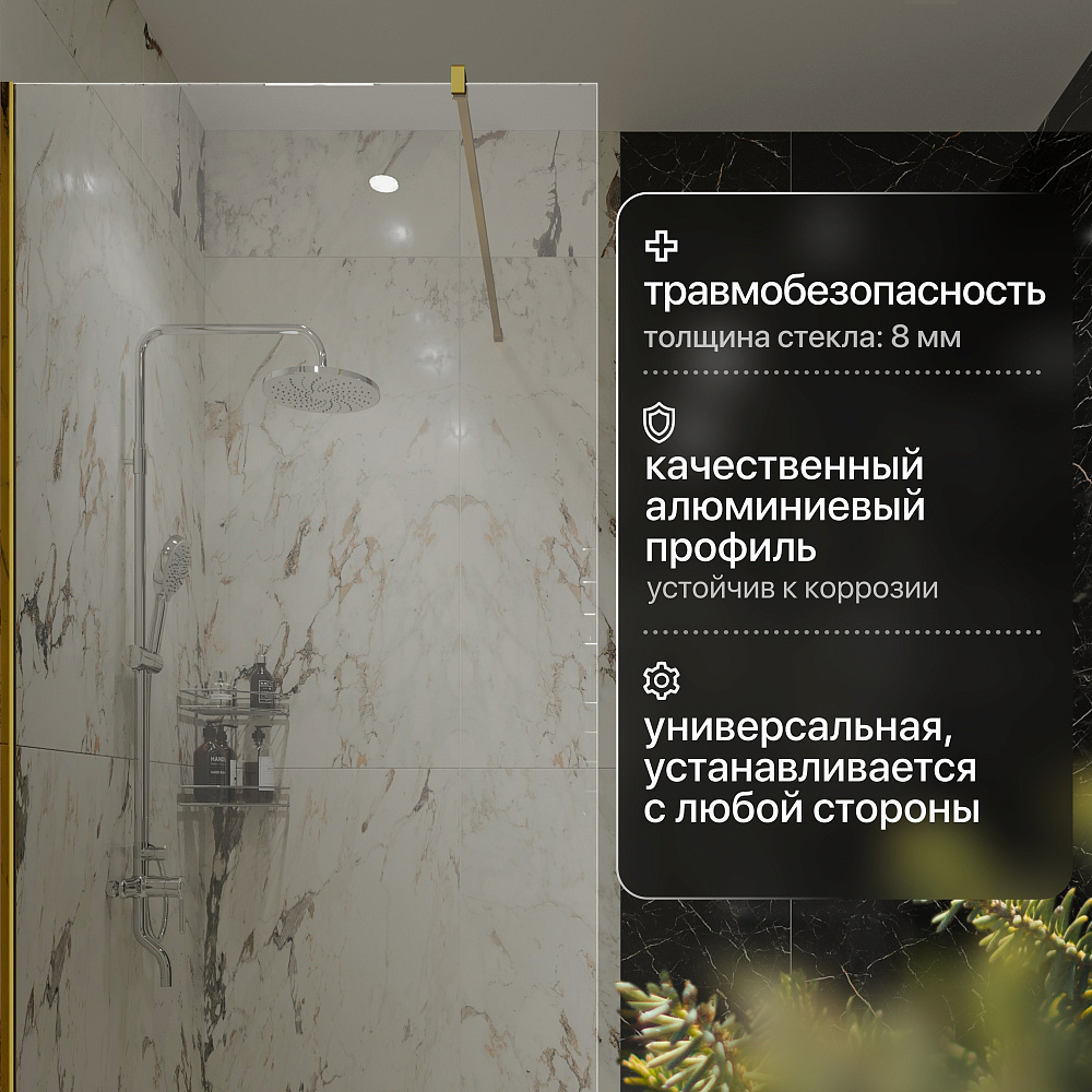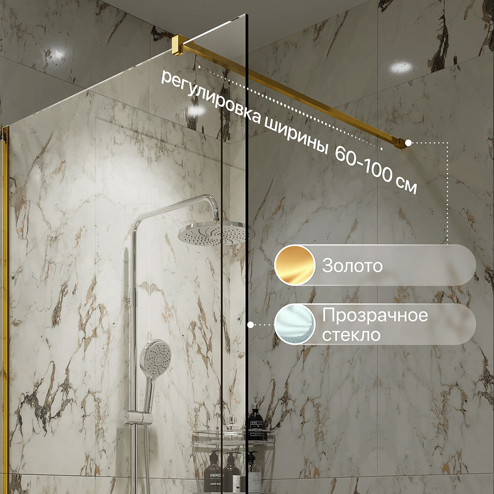 Душевая перегородка STWORKI Берген 90 см, профиль золото, прозрачное стекло