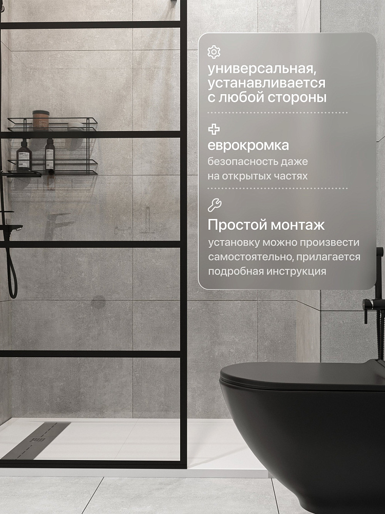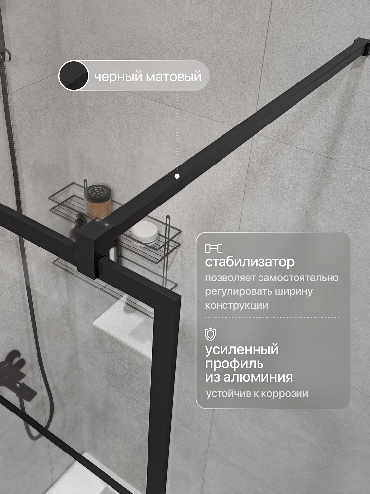 Душевая перегородка STWORKI Кронборг LOFT-GW- 90х220 90 см, профиль черный матовый, стекло прозрачное Optiwhite