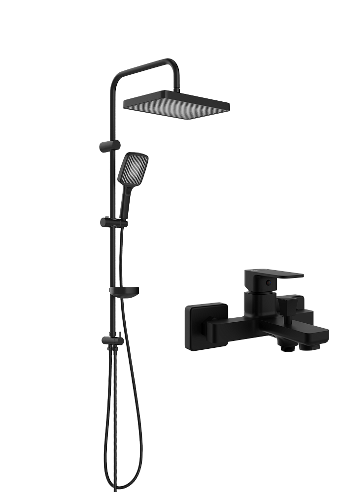 Душевая стойка STWORKI Берген S21180BK со смесителем Мосс S43100BK матовая черная