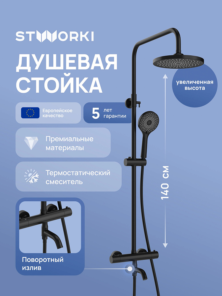 Душевая стойка STWORKI Готланд S13170BK матовая черная