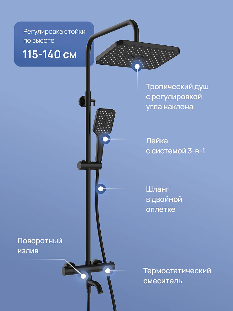 Душевая стойка STWORKI Готланд S13175BK матовая черная