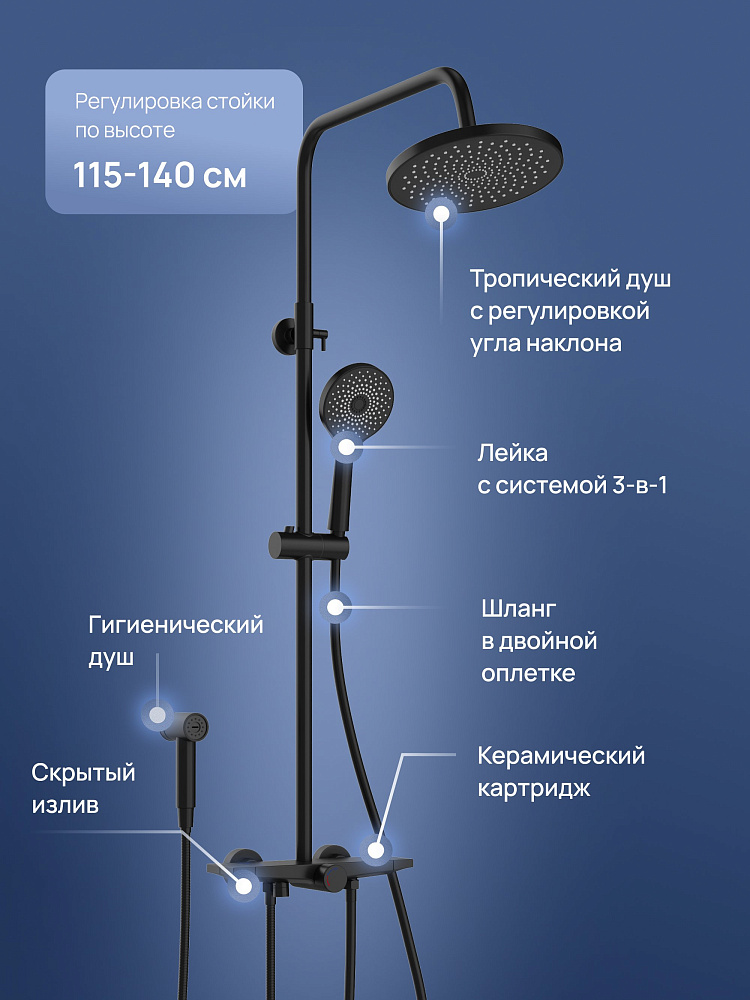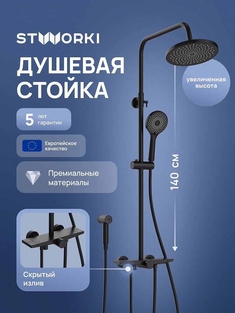 Душевая стойка STWORKI Готланд S13180BK матовая черная