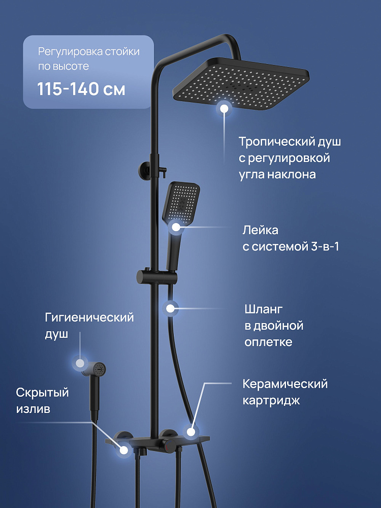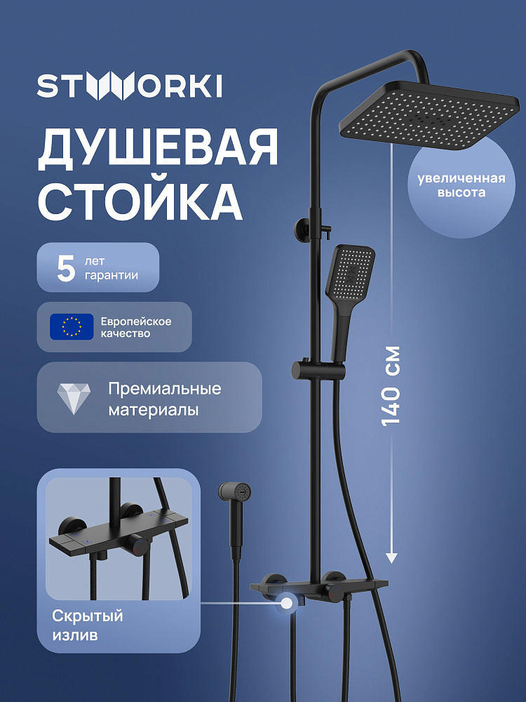 Душевая стойка STWORKI Готланд S13185BK матовая черная
