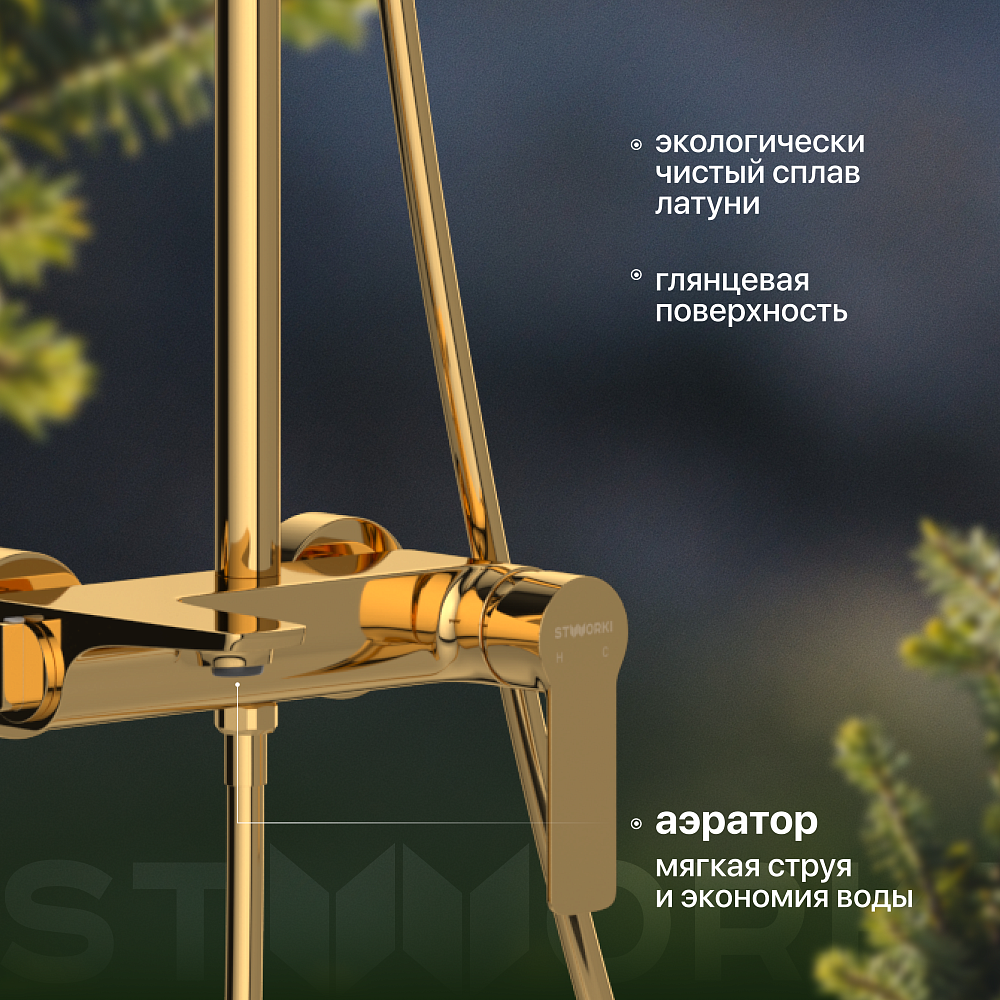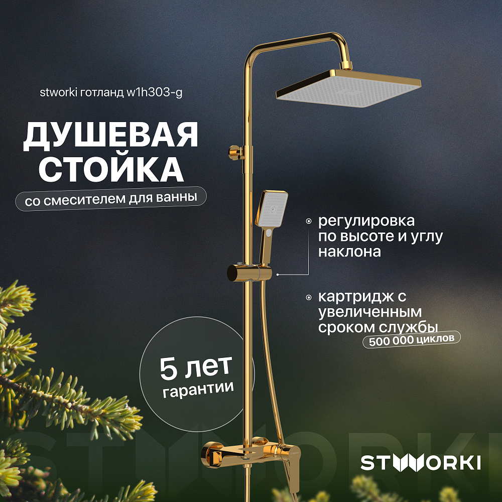 Душевая стойка STWORKI Готланд W1H303-G золото глянец