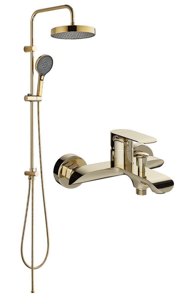 Душевая стойка STWORKI Гётеборг S23180GG со смесителем Копенгаген S42100GG, глянцевое золото