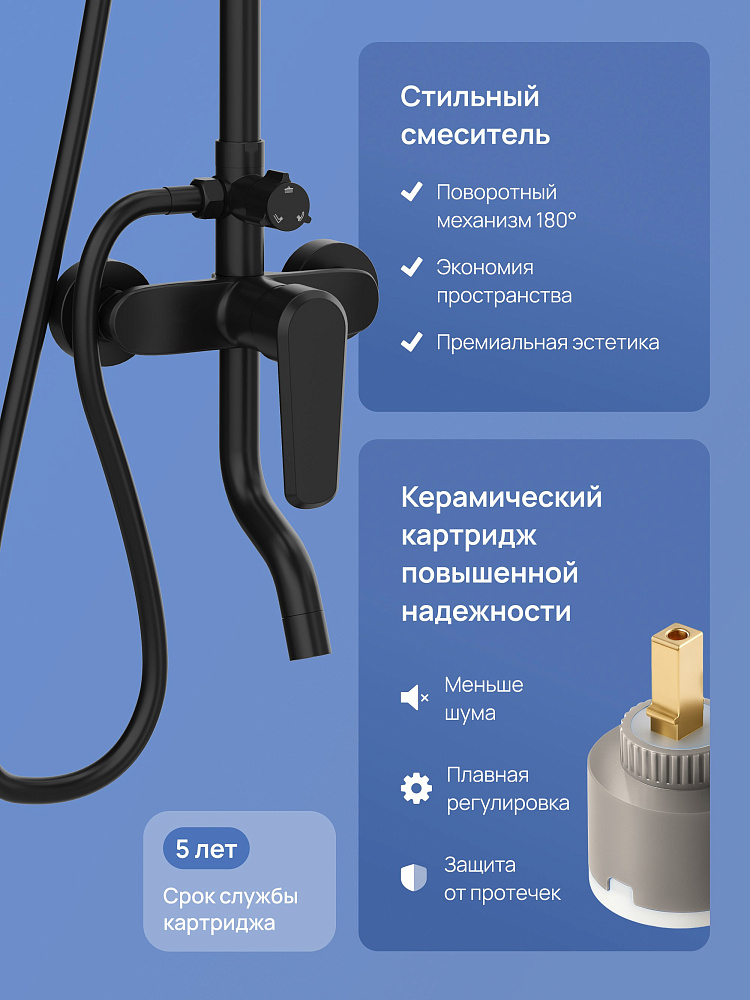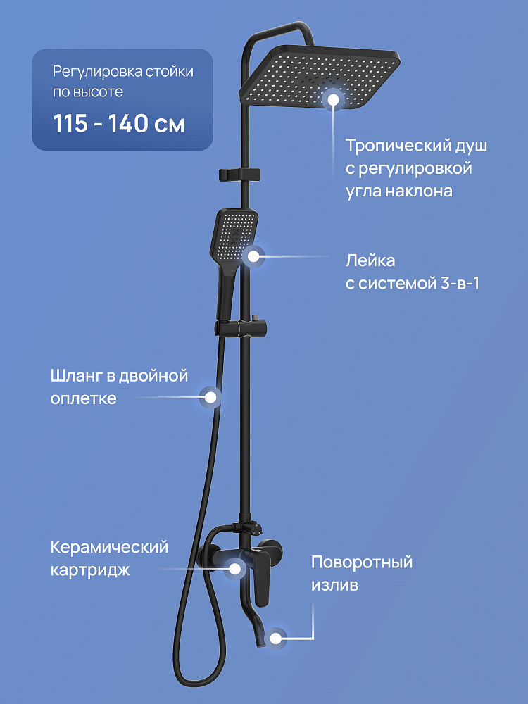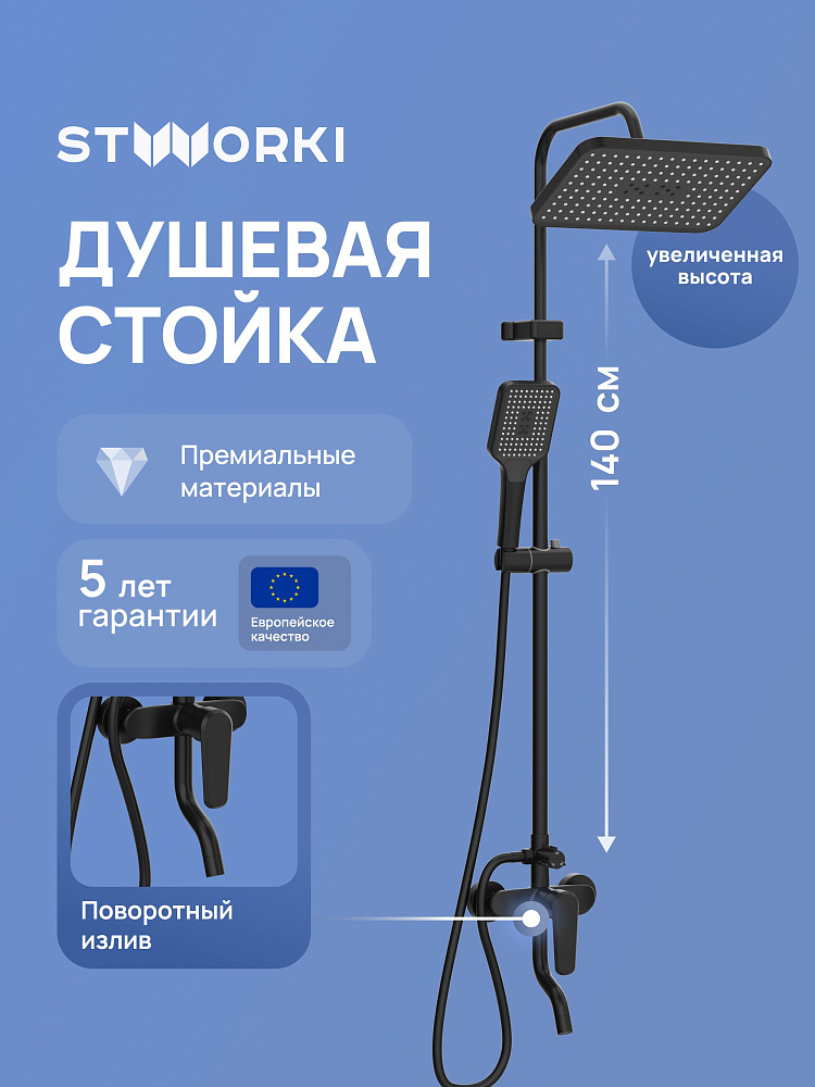 Душевая стойка STWORKI Киркенес S45175BK матовая черная