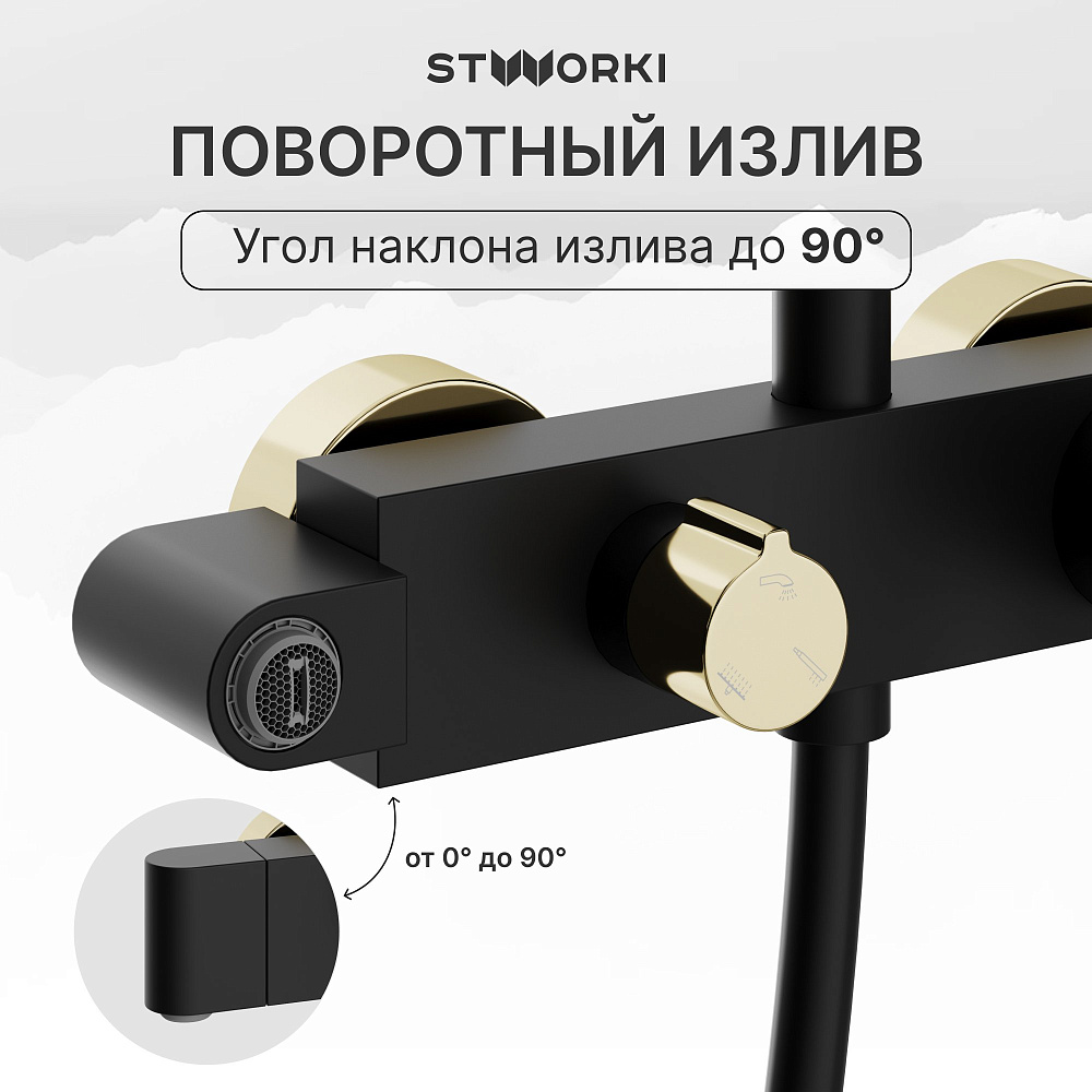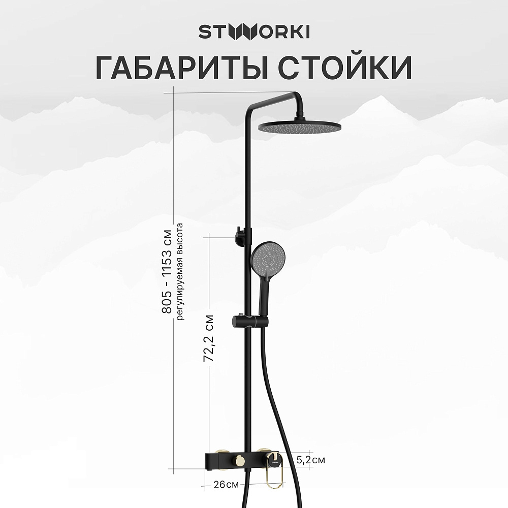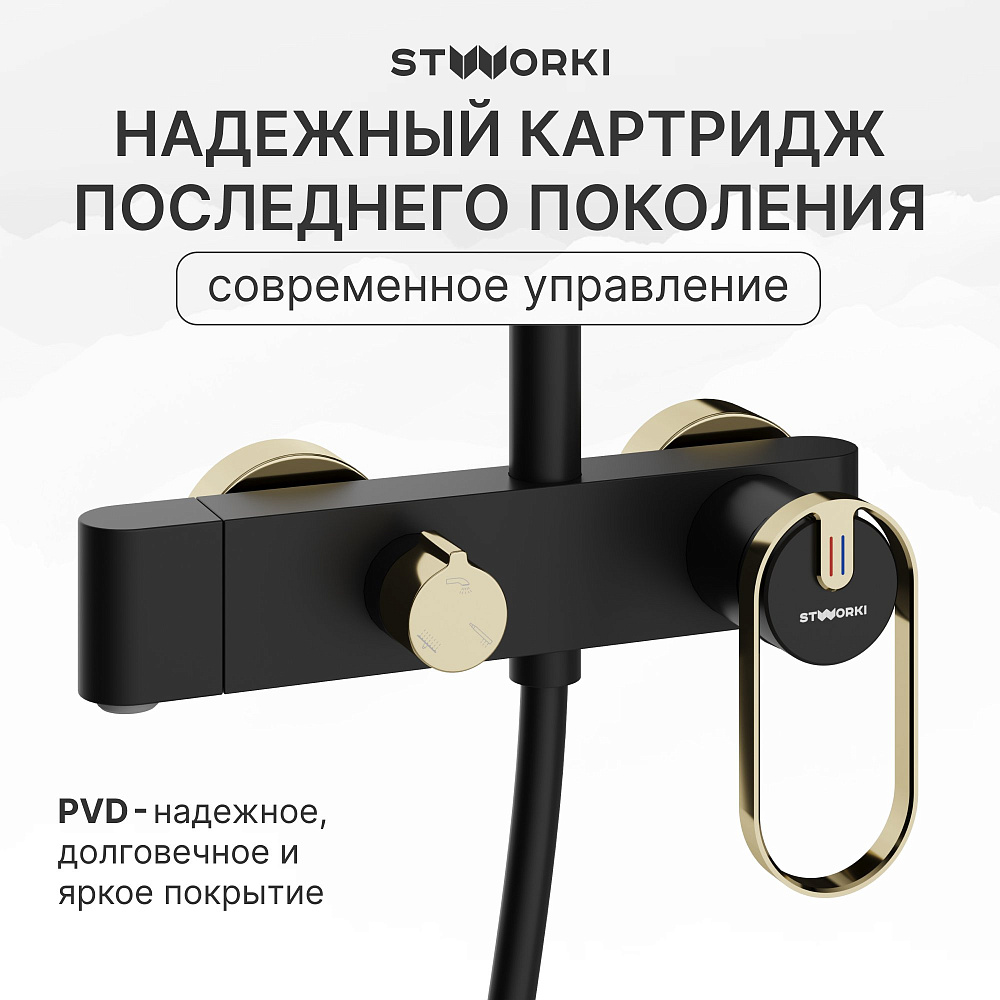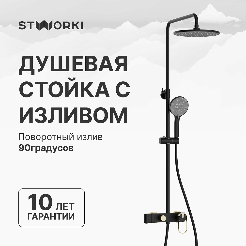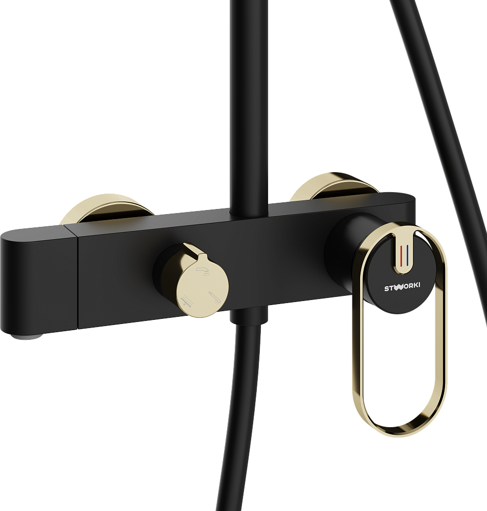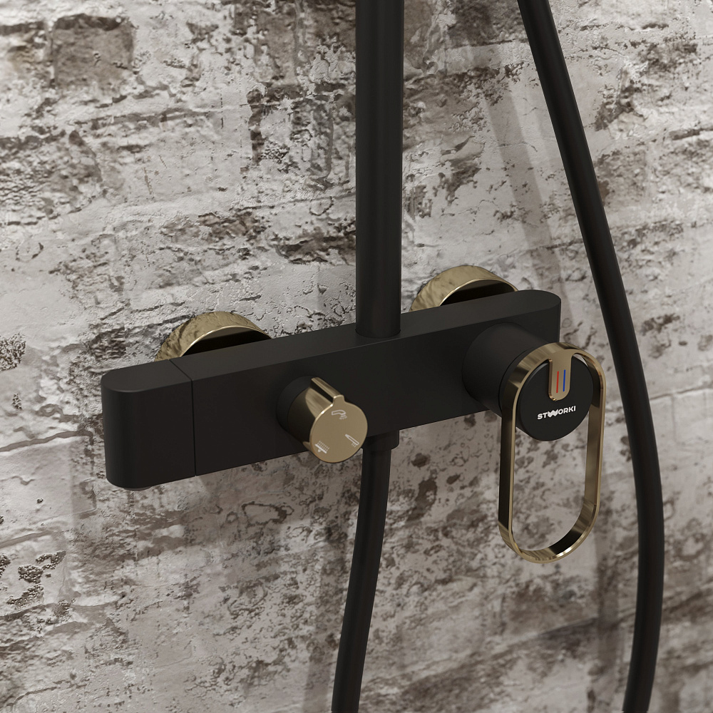 Душевая стойка STWORKI Малунг S11170BG матовый чёрный, глянцевое золото