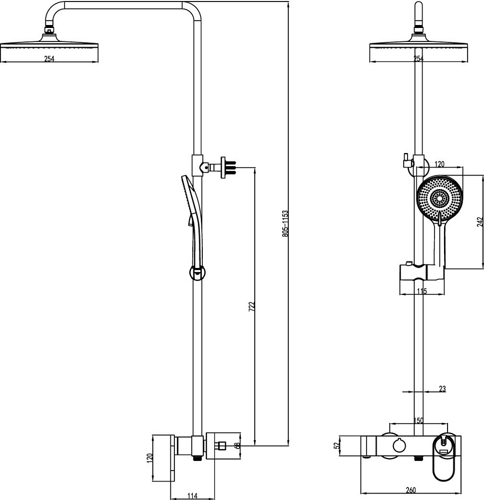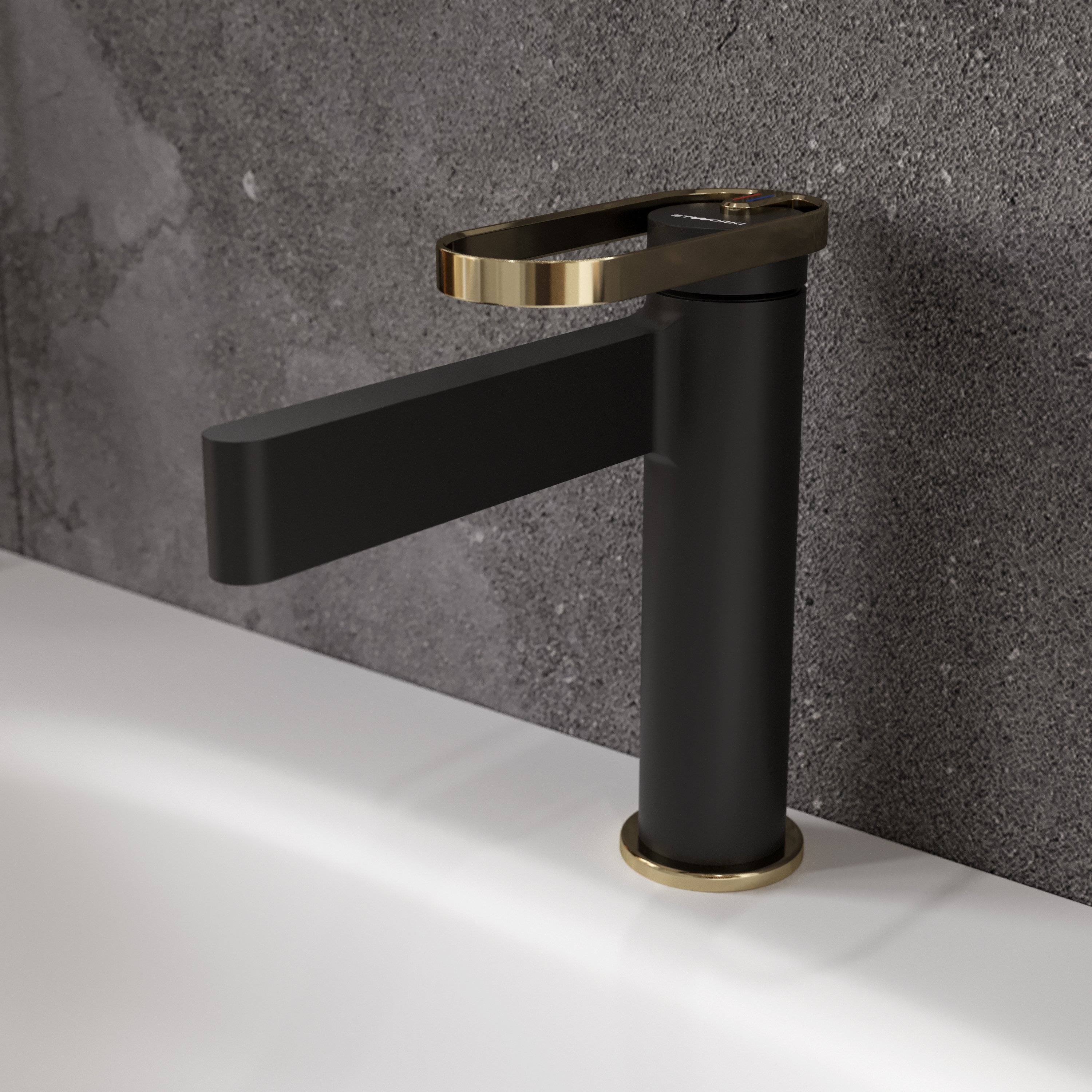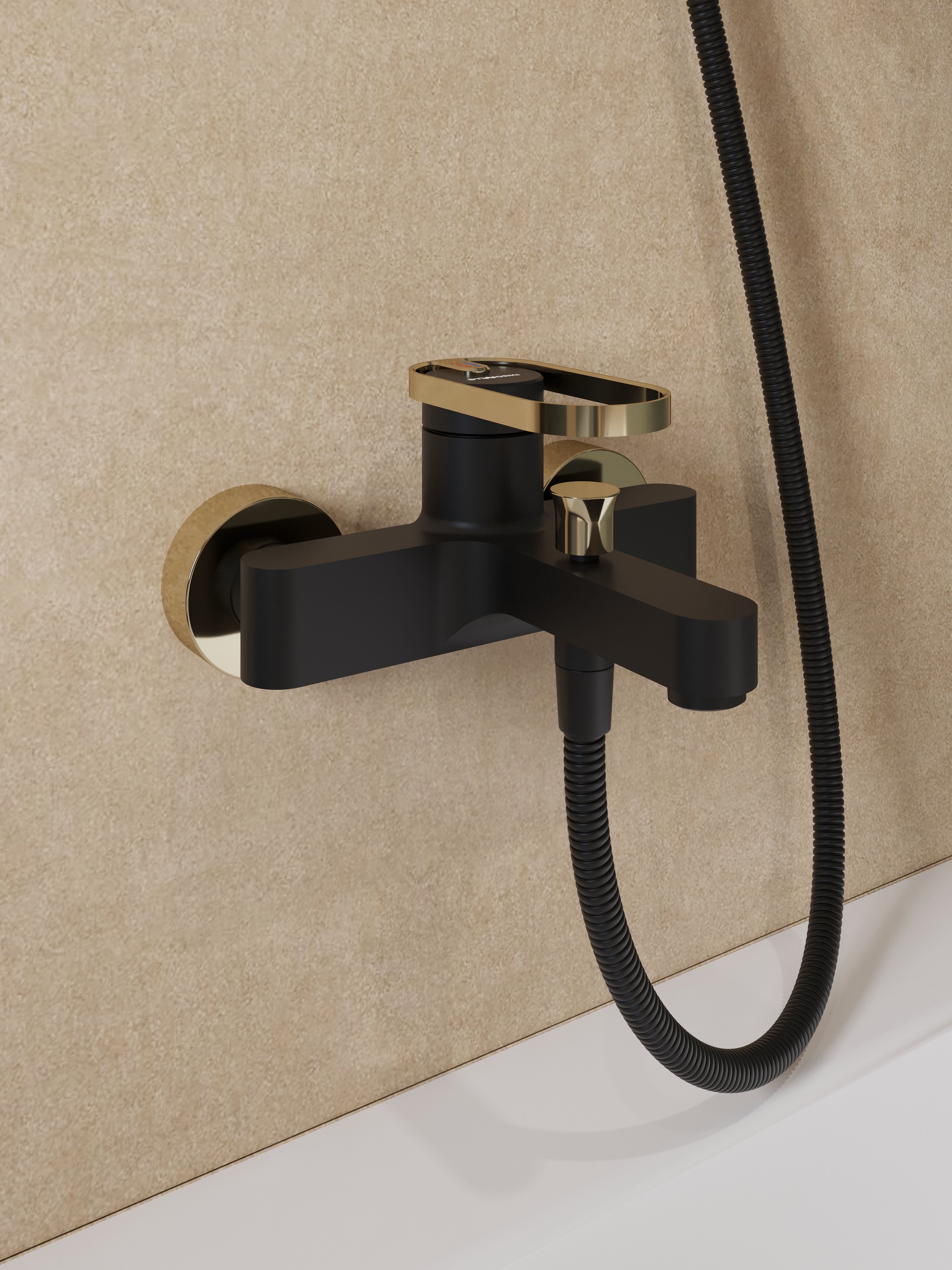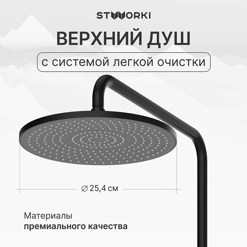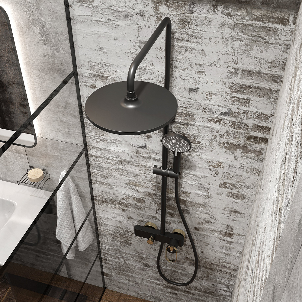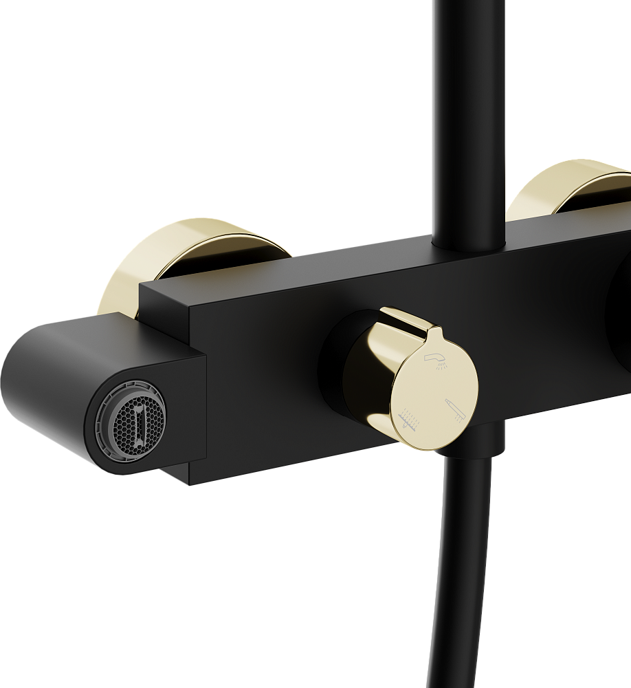 Душевая стойка STWORKI Малунг S11170BG матовый чёрный, глянцевое золото
