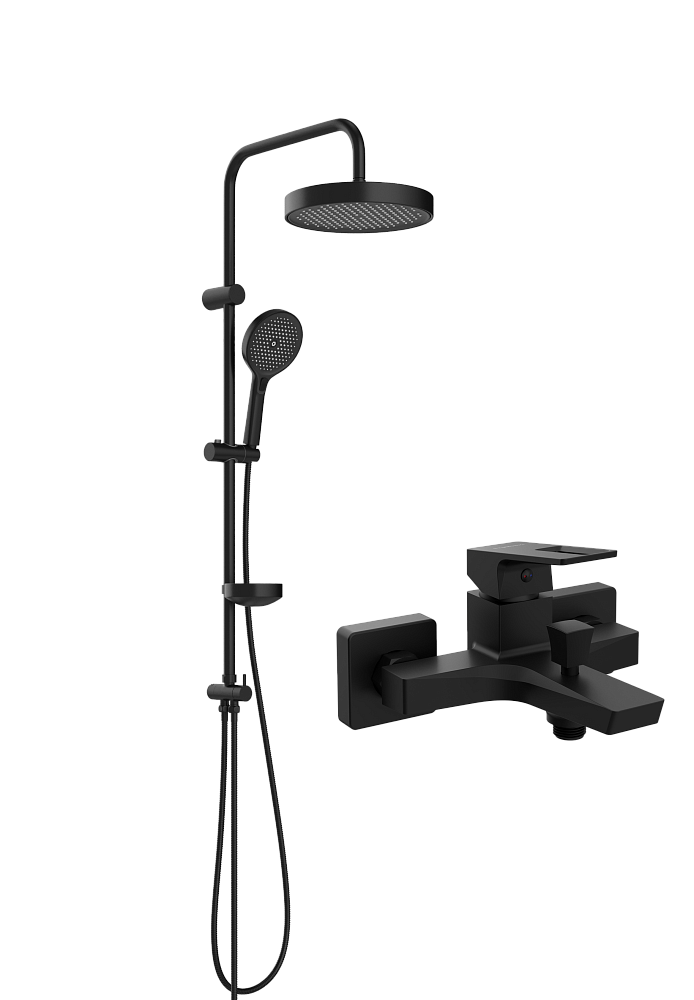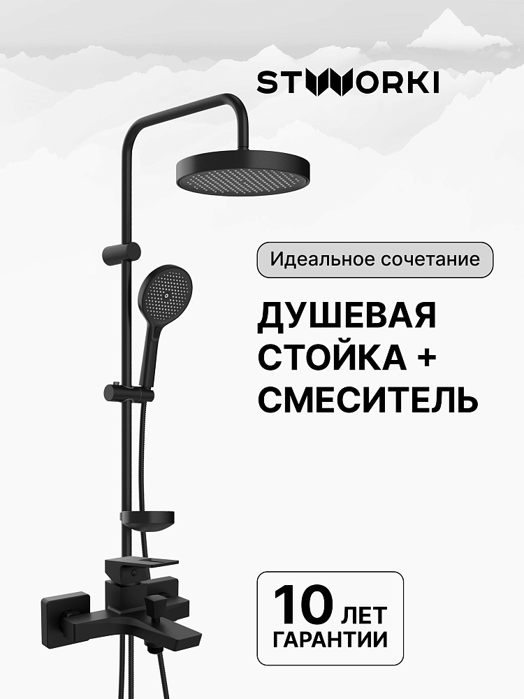 Душевая стойка STWORKI Монтре S30180BK со смесителем Хедмарк S38100BK матовая черная