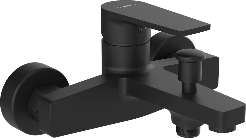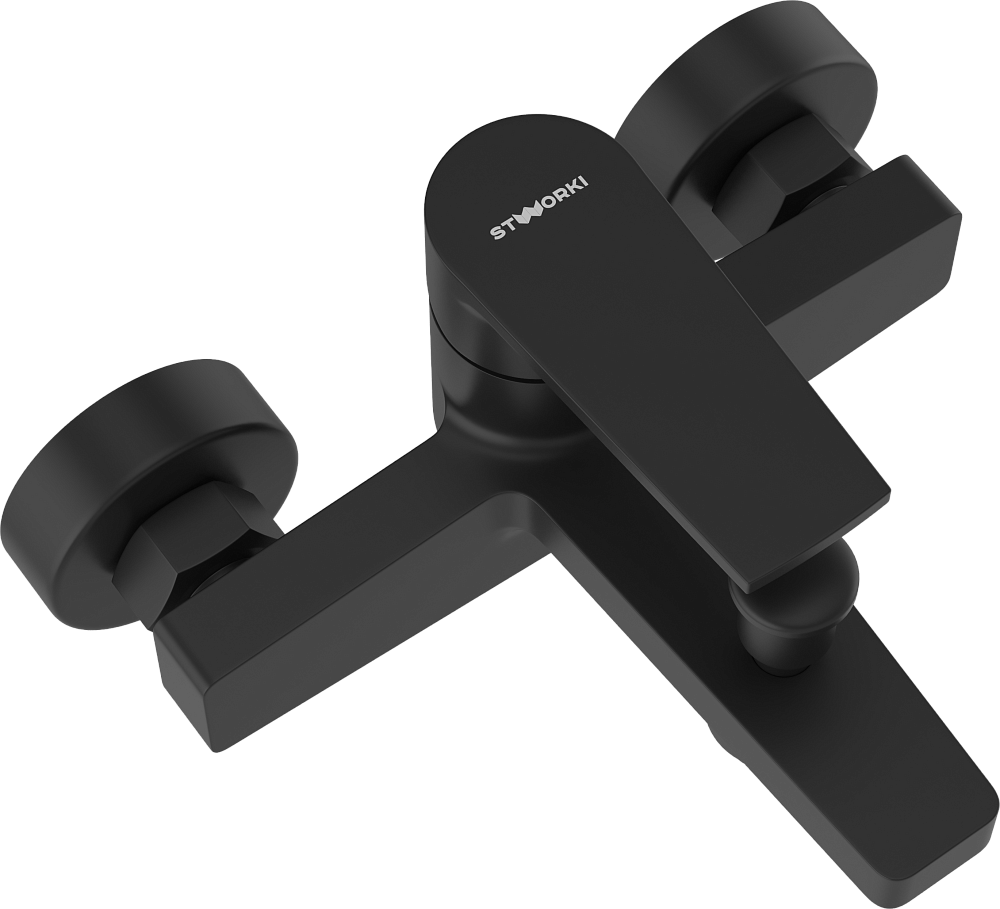 Душевой комплект Смеситель STWORKI Берген S21100BK, матовый черный + Стойка Хальмстад S15180BK, матовая черная