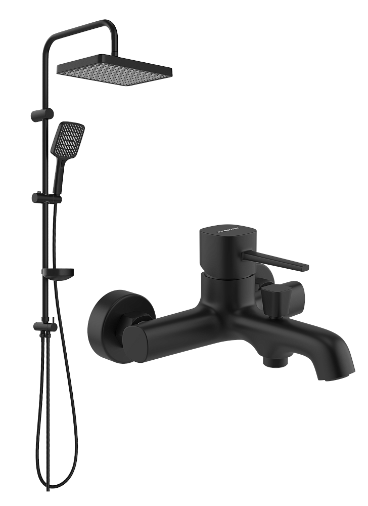 Душевой комплект Смеситель STWORKI Эстерсунд S31100BK, матовый черный + Стойка Хадстен S17180BK, матовая черная