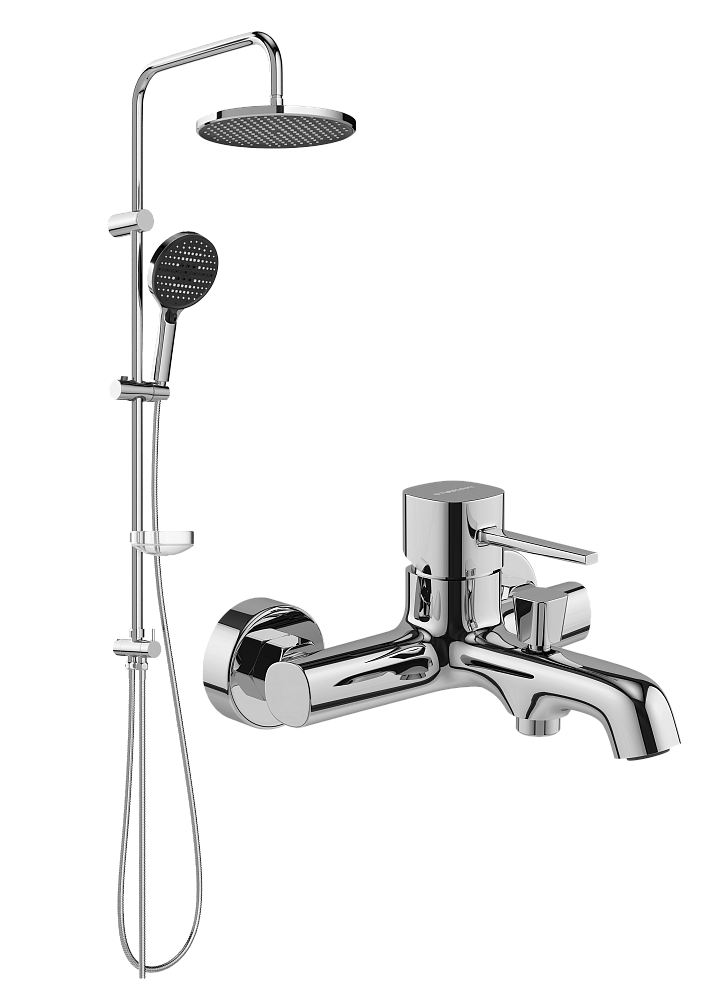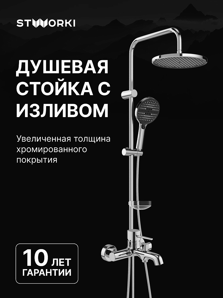 Душевой комплект Смеситель STWORKI Эстерсунд S31100CR, хром + Стойка Хальмстад S15180CR, хром