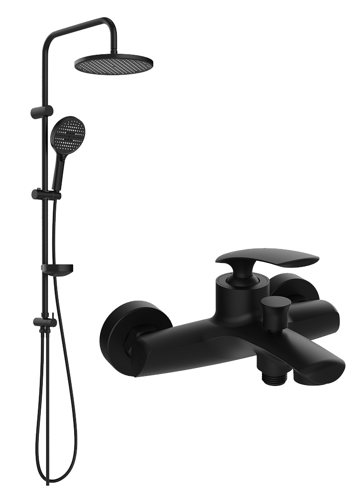 Душевой комплект Смеситель STWORKI Гётеборг S03100BK, матовый чёрный + Стойка Хальмстад S15180BK, матовая черная