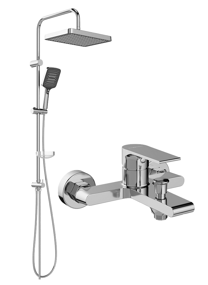 Душевой комплект Смеситель STWORKI Колдинг S32100CR, хром + Стойка Хадстен S17180CR, хром