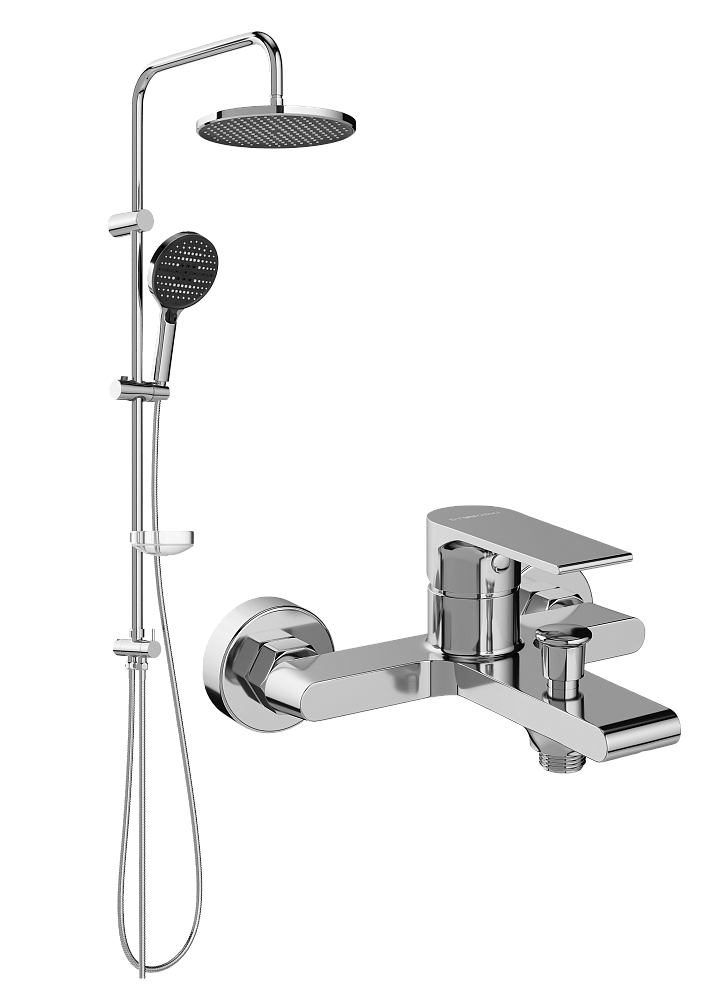 Душевой комплект Смеситель STWORKI Колдинг S32100CR, хром + Стойка Хальмстад S15180CR, хром