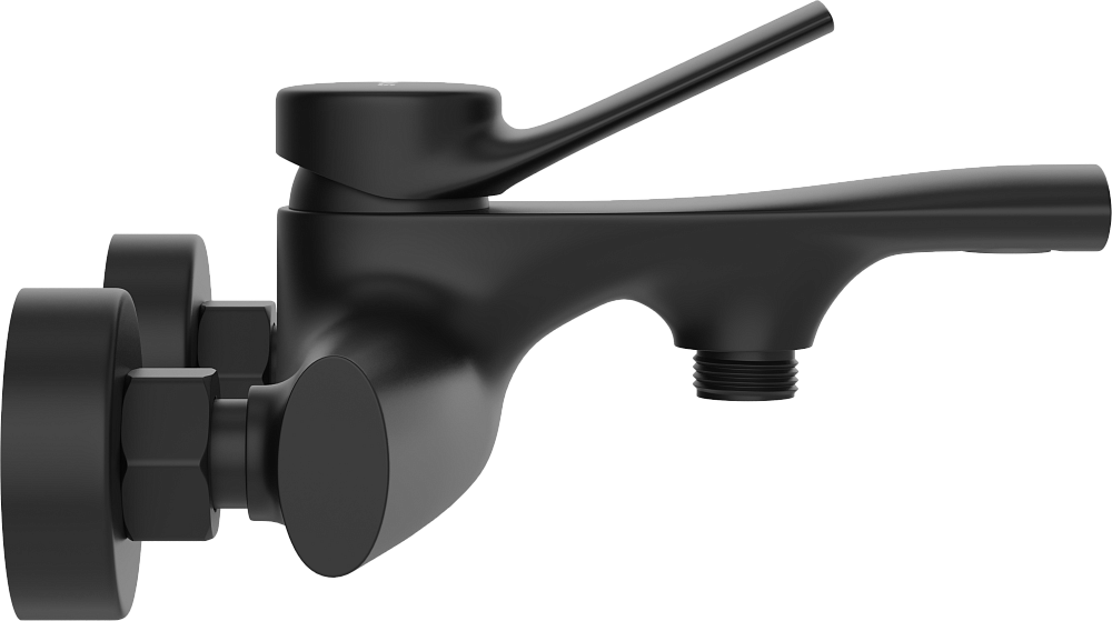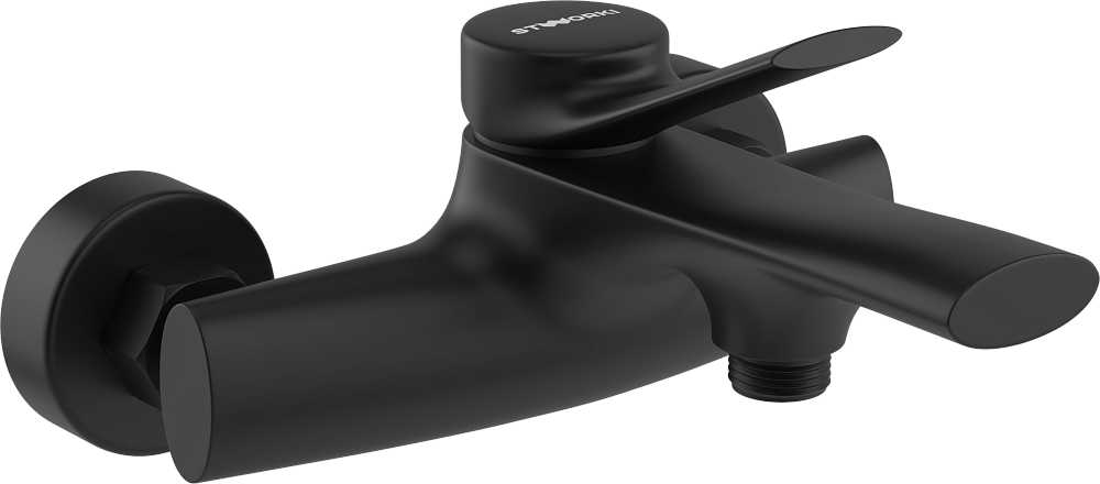 Душевой комплект Смеситель STWORKI Ларвик S24100BK матовый черный + Стойка Хальмстад S15180BK матовая черная