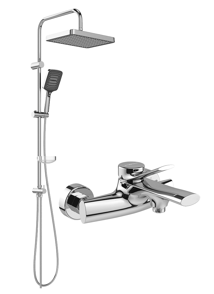 Душевой комплект Смеситель STWORKI Ларвик S24100CR, хром + Стойка Хадстен S17180CR, хром