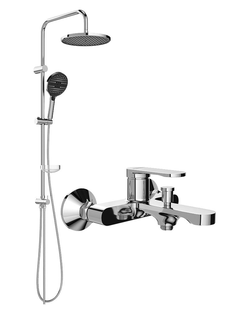 Душевой комплект Смеситель STWORKI Ноттвиль S34100CR, хром + Стойка Хальмстад S15180CR, хром