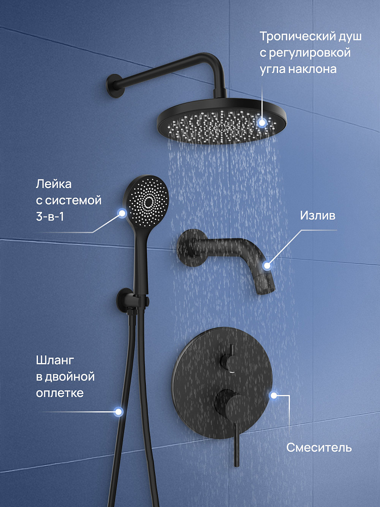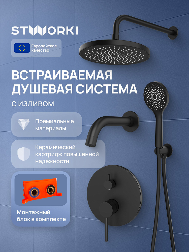 Душевой комплект STWORKI Эстерсунд S31240BK С ВНУТРЕННЕЙ ЧАСТЬЮ, матовый черный