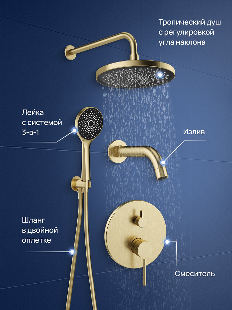 Душевой комплект STWORKI Эстерсунд S31240GM С ВНУТРЕННЕЙ ЧАСТЬЮ, матовое золото