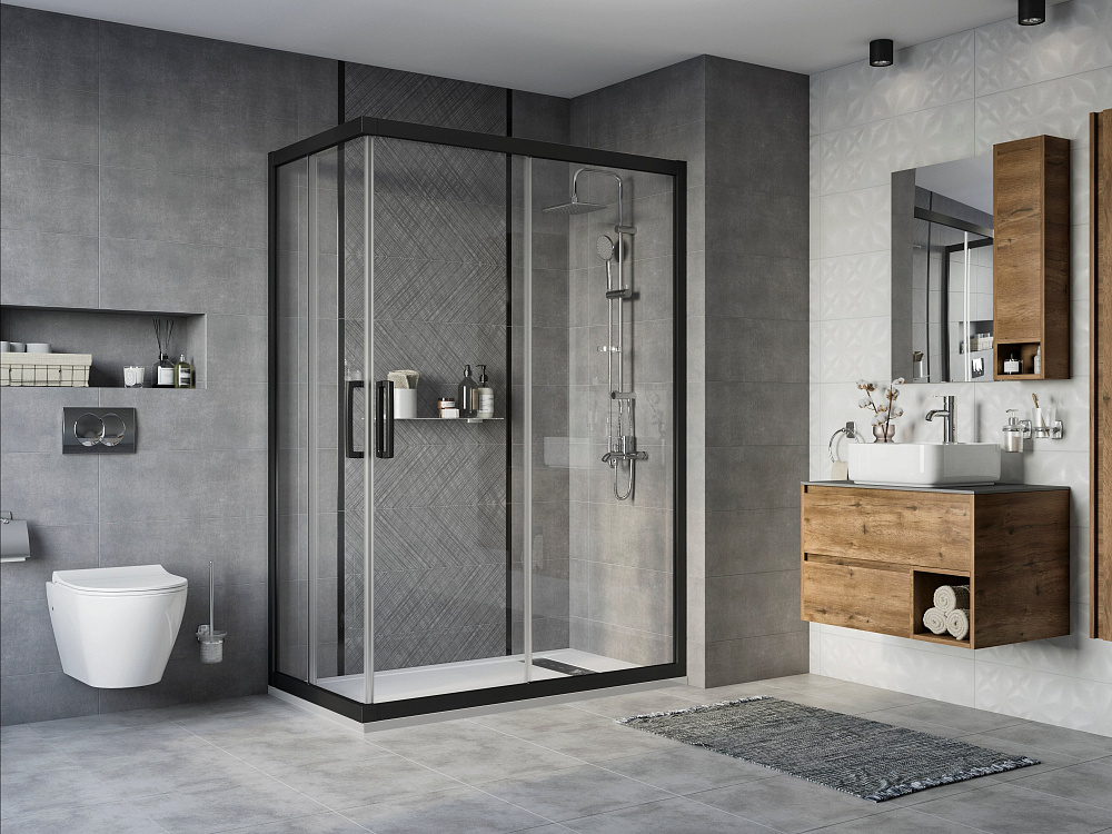 Душевой уголок STWORKI Карлстад 140x80 см профиль черный матовый
